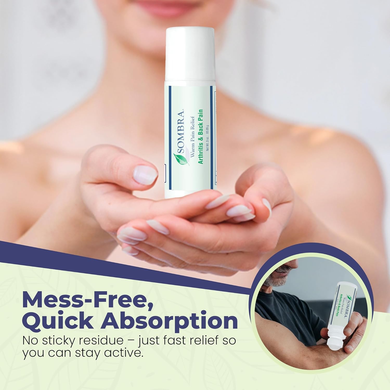 Sombra Warm Pain Relief Gel, Warm Relief for Arthritis and Chronic Pain Pre-Workout Muscle Rub Vegan Formula Free of Artificial Fragrances, Dyes, NSAIDs, Wax, Petroleum, Alcohol - 3oz Roll-On
