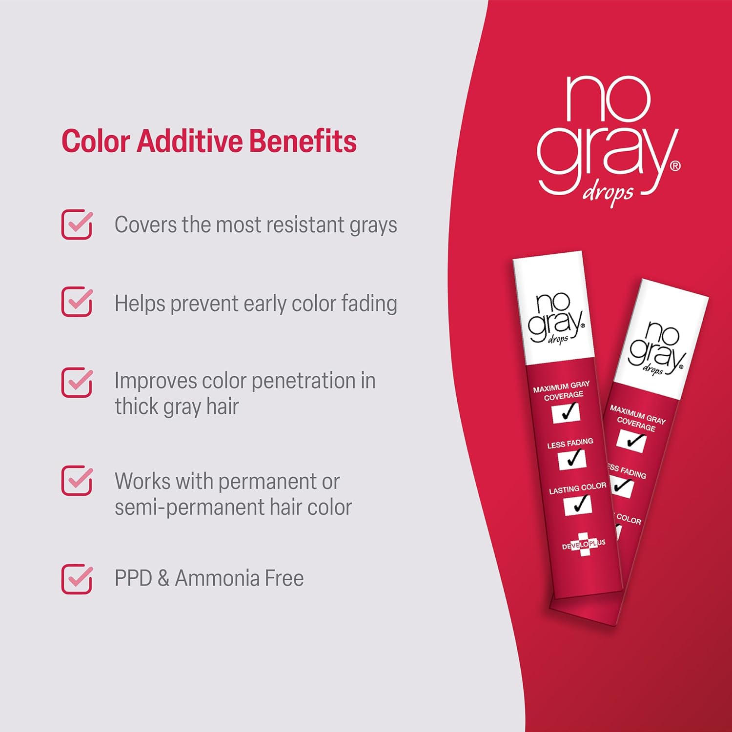 No Gray Color Drops, 2 Pack, Cover Gray Hair, Prevent Premature Color Fade, and Extend Time Between Root Touch Ups, Compatible with Permanent and Semi Permanent Hair Dye, PPD & Ammonia Free