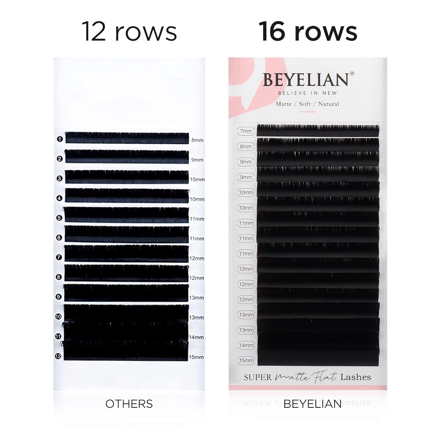 BEYELIAN Eyelash Extensions, Individual Lashes, 0.15mm D Curl 15mm Super Matte Classic Lash Extensions, Ellipse Flat Eyelash Extension, Light and Soft Natural Look for Professional Salon Use