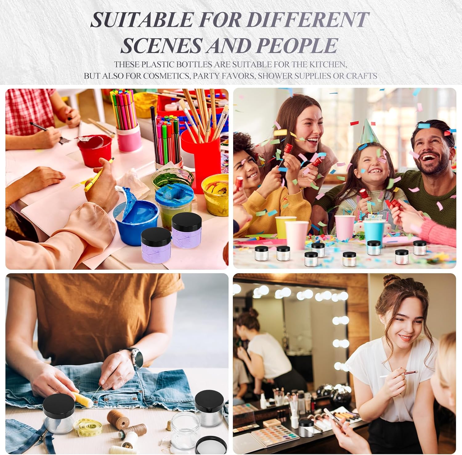 SATINIOR 36 Pieces 2 oz Plastic Jars with Lids Wide Mouth Airtight Reusable Container Acrylic Cosmetic Small Jars for Lotions Ointments Travel Toiletries Creams Make up Storage(Black)