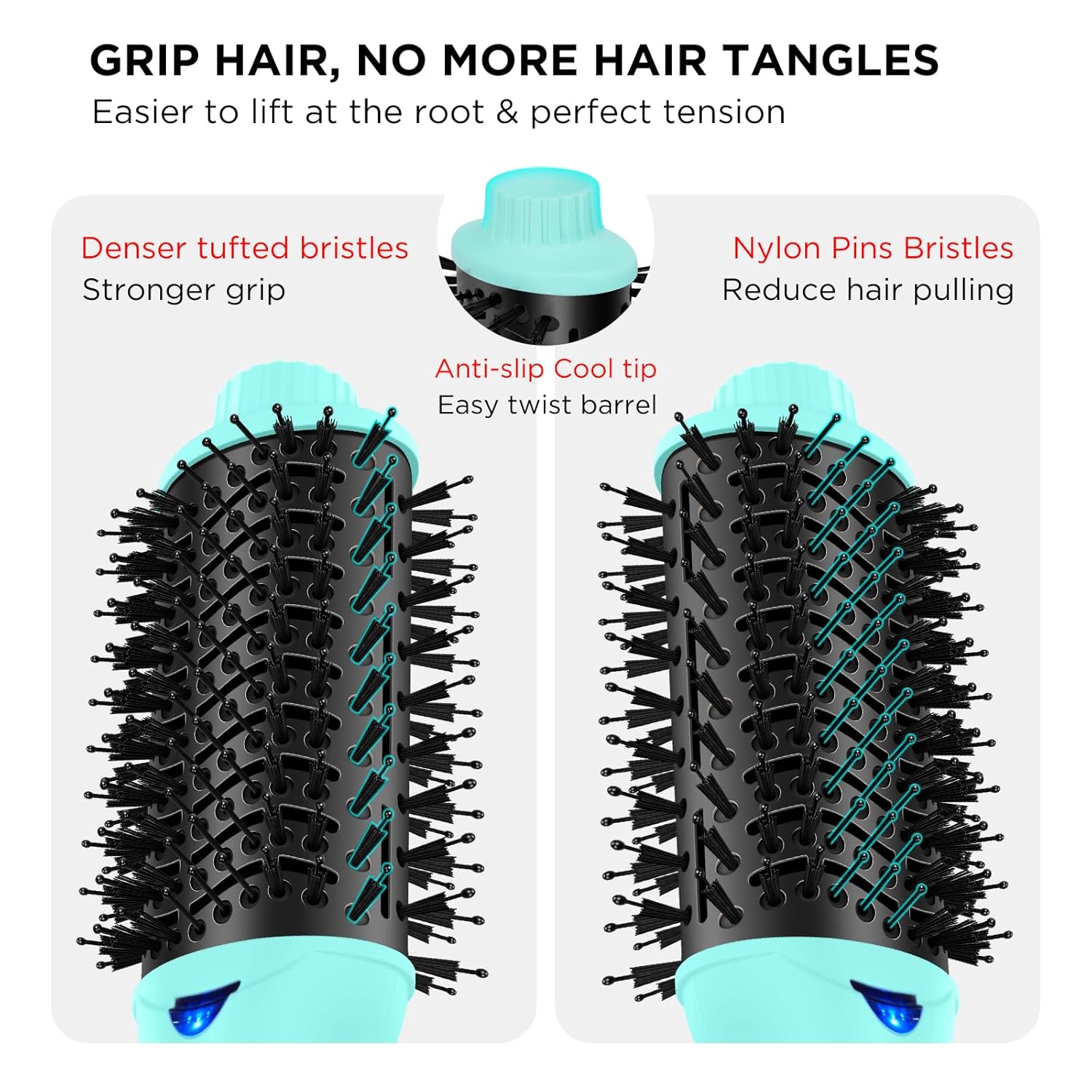 - UNIQUE OVAL BRUSH DEESIGN: Brush is designed with Nylon Pin & Tufted Bristles for easy detangling make the hair smooth, healthy, soft and without static electricity. The oval brush can brush hair from root to tip for straight styles, lift hair from root to tip and flick out for voluminous styles.