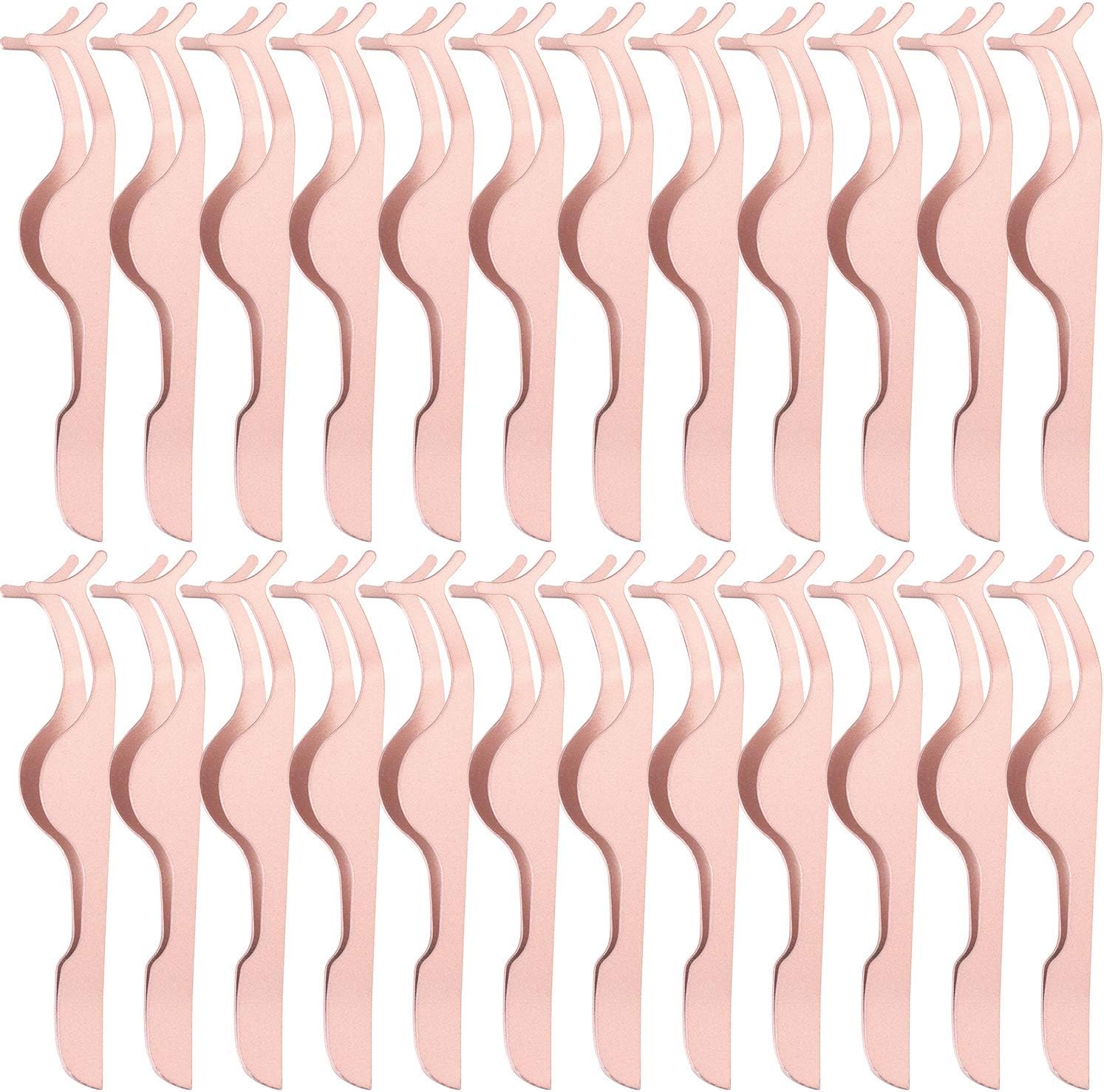 24 Pieces False Eyelashes Applicator Tool Stainless Steel Eyelash Extension Tweezers Remover Clip Tweezers Nipper Eyelash Auxiliary Clip for Women Makeup Application and Removal