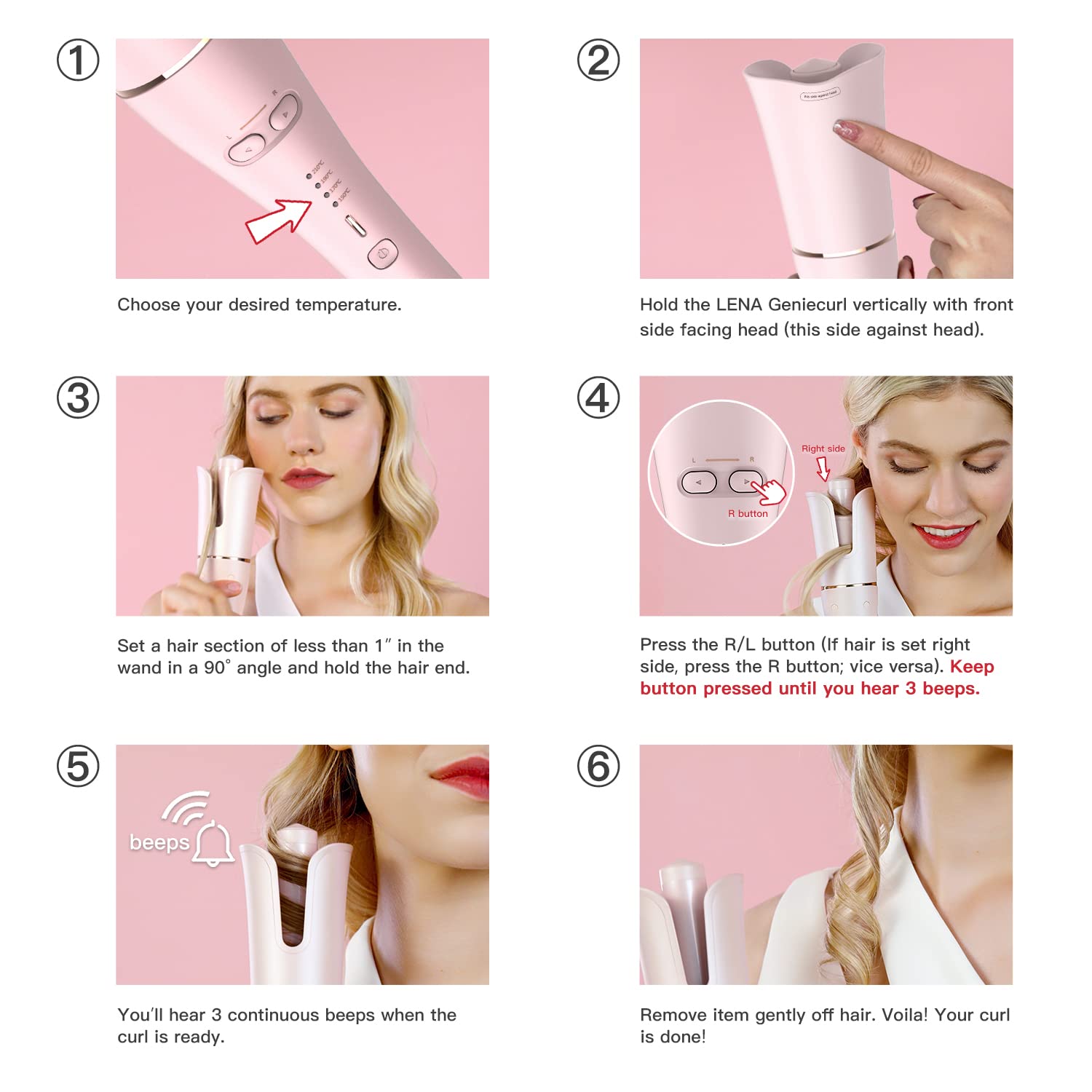 - 💓【ANTI SACLD IRON STYLER WITH HEAT PROTECTION COVER】 Double-layered heat protection cover is designed to prevent burning on your fingers or face, ideal for long hair styling as well as medium-length hair users who need to hold the wand close to the facial skins ❗Note: LENA Geniecurl hair curler is not supposed to work on hair that is too short