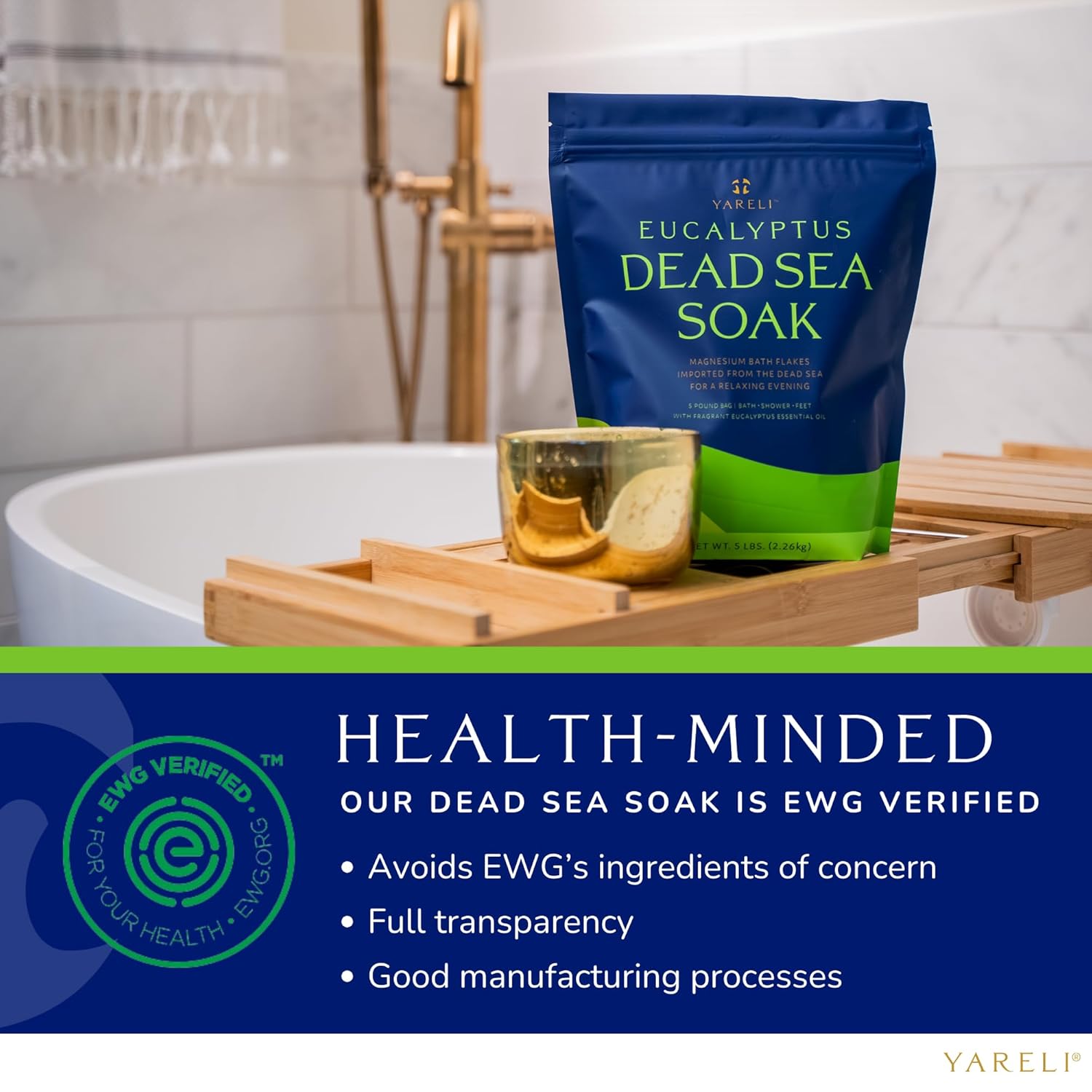Magnesium Flakes, 5lb Eucalyptus, Dead Sea Bath and Foot Soak, Alternative to Epsom Salt with Over 250,000mg of Magnesium Chloride Per Bag