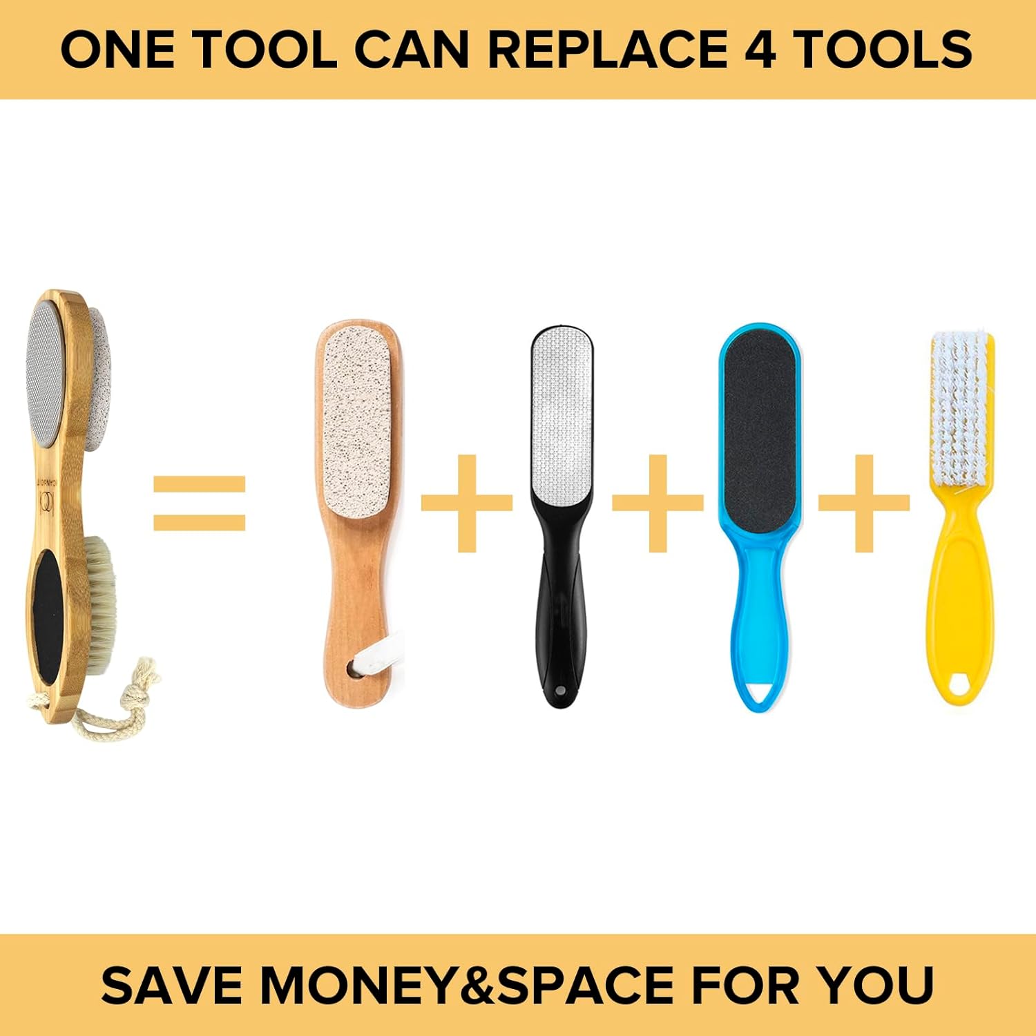 - 4 in 1 pedicure tool:multi-purpose design,no need more individual foot care tools,1 pack is enough.Including stainless steel foot file,natural boar bristles cleaning brush,pumice stone and sand paper.Work well for dead skin,dry feet or wet feet with gentle or heavy foot exfoliating.