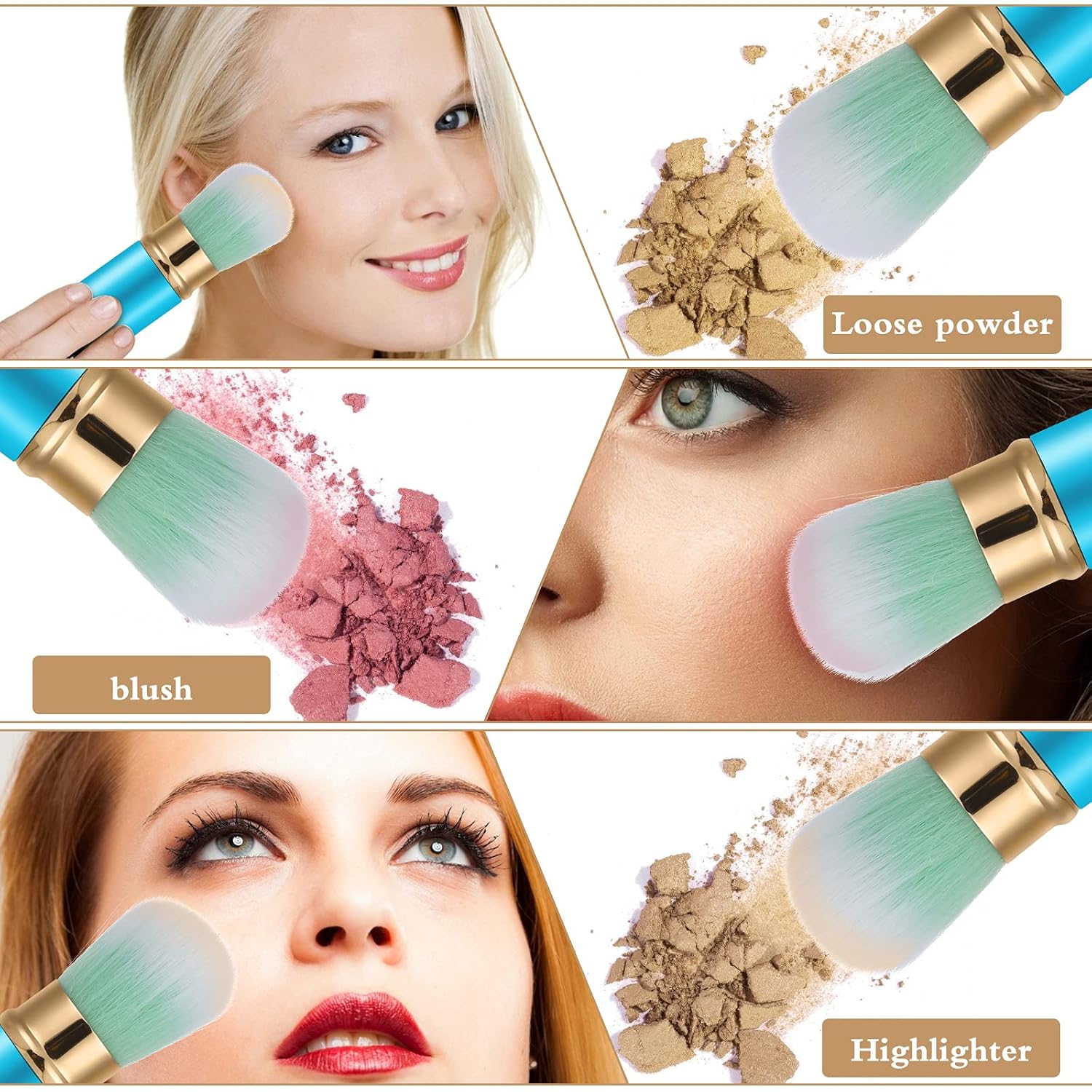 - 【Soft and Silky Brush Hair】 The kabuki foundation brush made with high quality synthetic fibers, super soft, perfect for blending Liquid foundation , sunscreen, blush, cream, self tanner, buffing, stippling, concealer, bronzer, loose powder cosmetics or nail dust. allows you to tap on products for flawless, air-touched, full-coverage finish, don't absorb foundation into the brush itself.