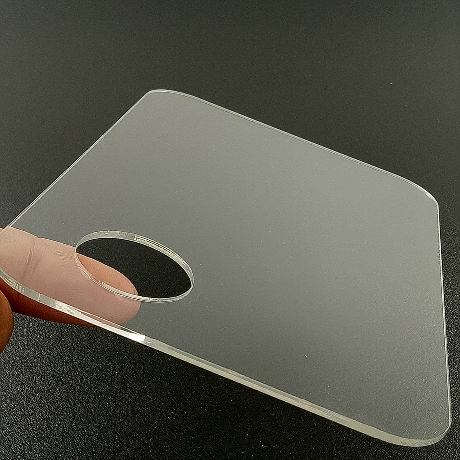- Palette size: 10 x 15cm; Spatula length: 15cm; Hole diameter: 2cm; Color: Clear, silver; ●●●Note: Please peel off the protective film on the surface before using the palette