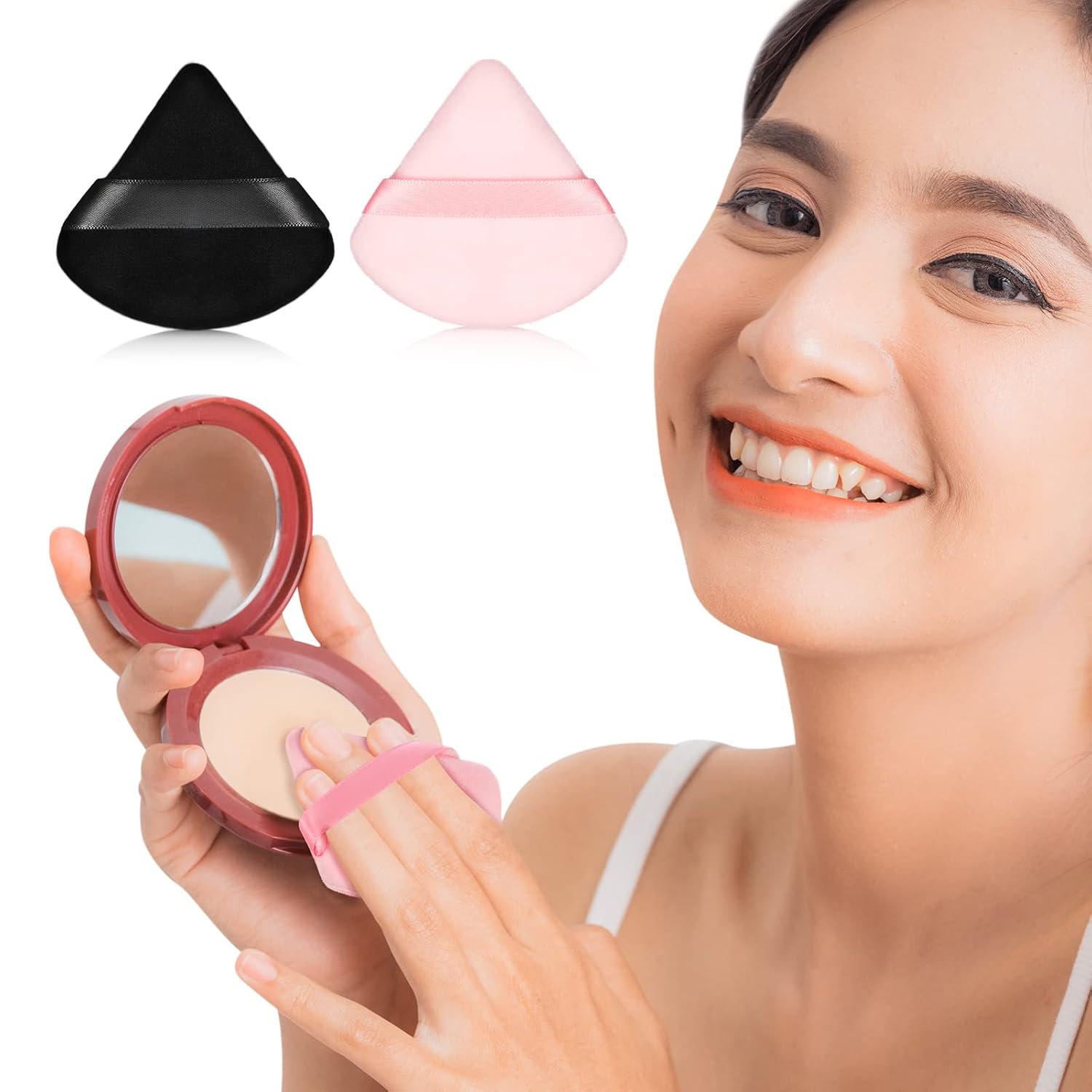- Humanized style: our powder puff is actually designed with triangle and circle style, when you put the foundation on your cheeks and forehead, you can use the round side, when you put foundation on the eye, you can choose the triangle side, and you won't have to worry about the uneven makeup