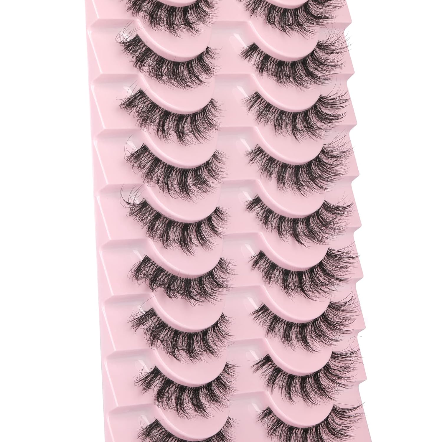 FANXITON Mink Lashes with Clear Band 15 MM 10 Pairs Cat-Eye Lashes Natural Look False Eyelashes Pack Wispy Eyelashes 3D Faux Mink Eyelashes