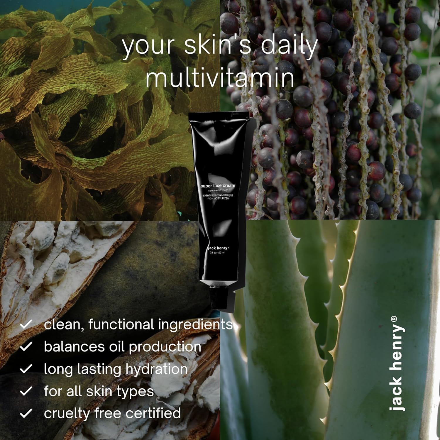 Jack Henry Super Face Cream - Lightly Scented Lightweight Hydrating Facial Moisturizer for Men & Women - Suitable for All Skin Types - Organic & Plant-Based (2 oz)