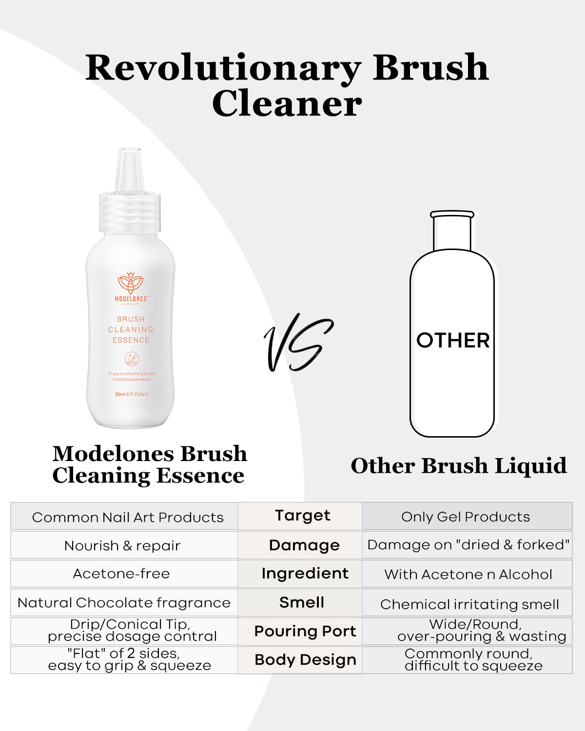 - 【Guarantee & Warn】 - Modelones brush cleaning solution is designed to keep your brushes in excellent condition for years to come. With mild solution, and added chocolate aroma, without any irritating volatile ingredients. Any problem, please contact us for help # NOTE: This cleaner is professionally used for cleaning nail brushes, not recommended to use it directly on the skin #