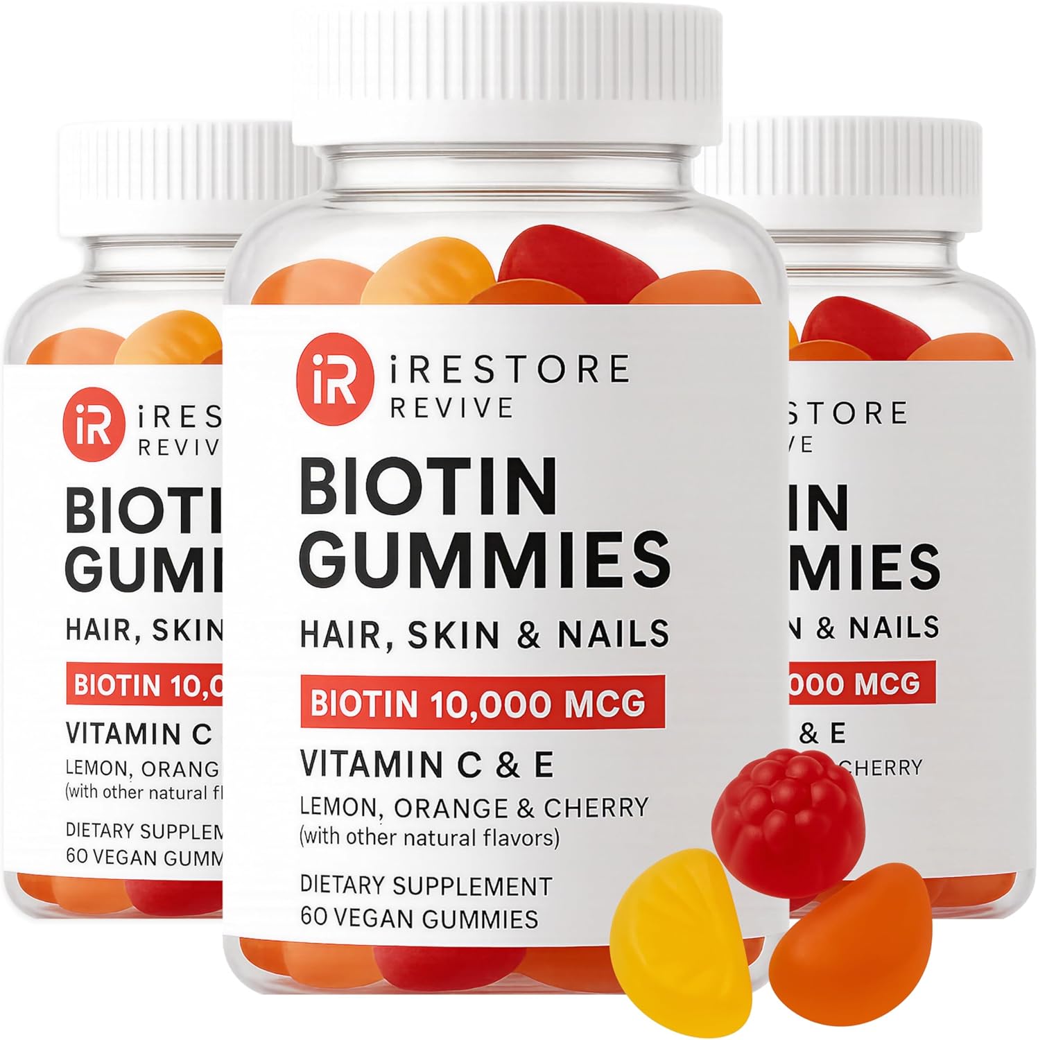iRestore Hair Gummy Vitamins, Vegan Biotin Gummies for Hair Skin and Nails, Hair Growth Gummies for Women & Men, Biotin 10,000mcg, 3PK