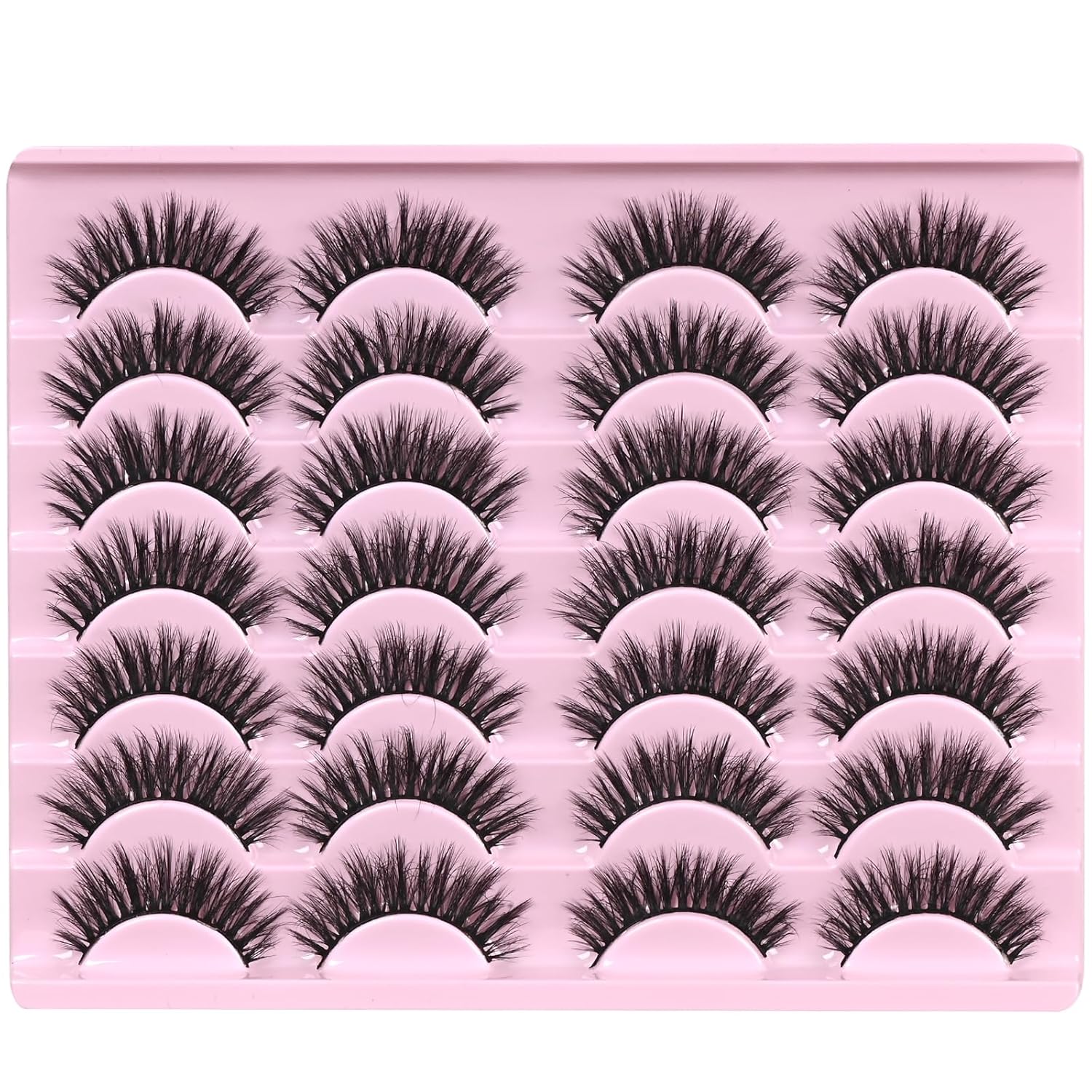 FARRED Lashes Natural Look Short Cat Eye Natural Lashes Fluffy Wispy False Eyelashes 14 Pairs Faux Mink Strip Eye Lashes Pack for Daily Makeup (F7 | 6-15mm)