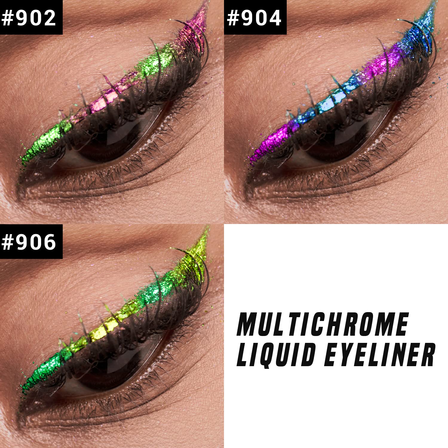 CHARMACY Chameleon Liquid Eyeliner, Liquid Glitter Eyeliner, Highly Pigmented, Metallic Intense MultiColor Shifting waterproof Eyeliner, Ultra-Fine Tip, Longwearing, Smudge-proof (#SET2-902/904/906)