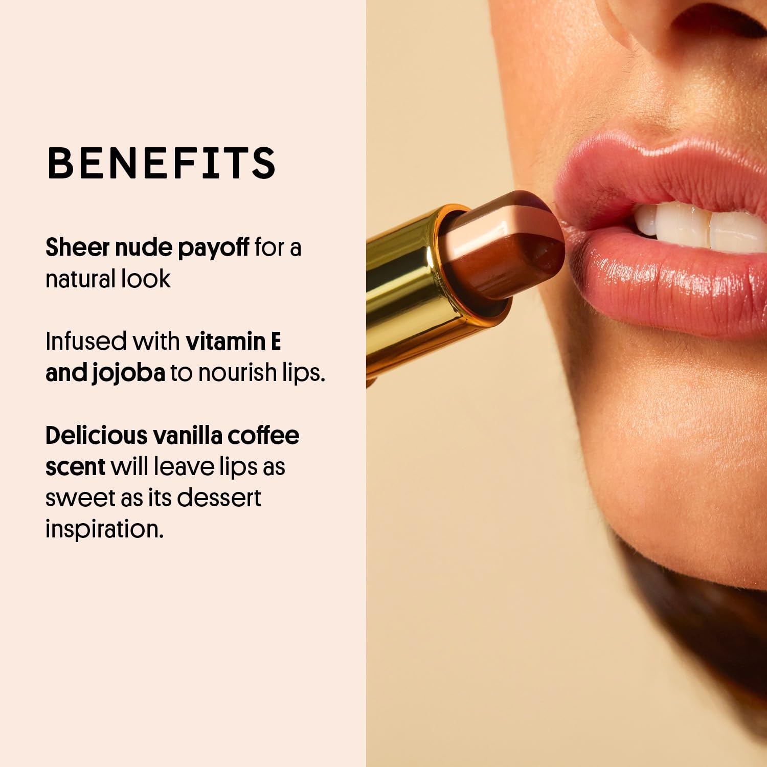 - VANILLA COFFEE: Indulge your pout in the mouth watering aroma of a freshly brewed affogato; every swipe releases creamy espresso and sweet vanilla notes while drenching lips in hydrating, sheer-nude goodness.