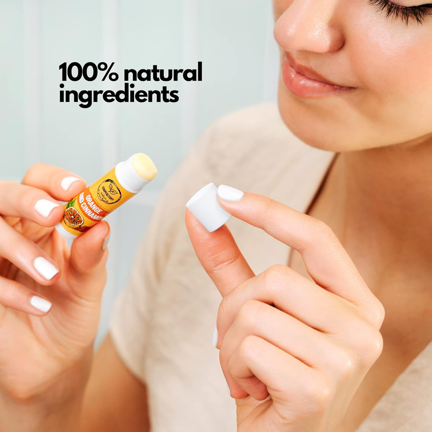 SoapFactory Natural Lip Balm for Dry cracked Lips with Orange and Cinnamon, Vegan, Organic Certified, Lip Care with Carnauba Wax for Women and Men, 0.17 ounce