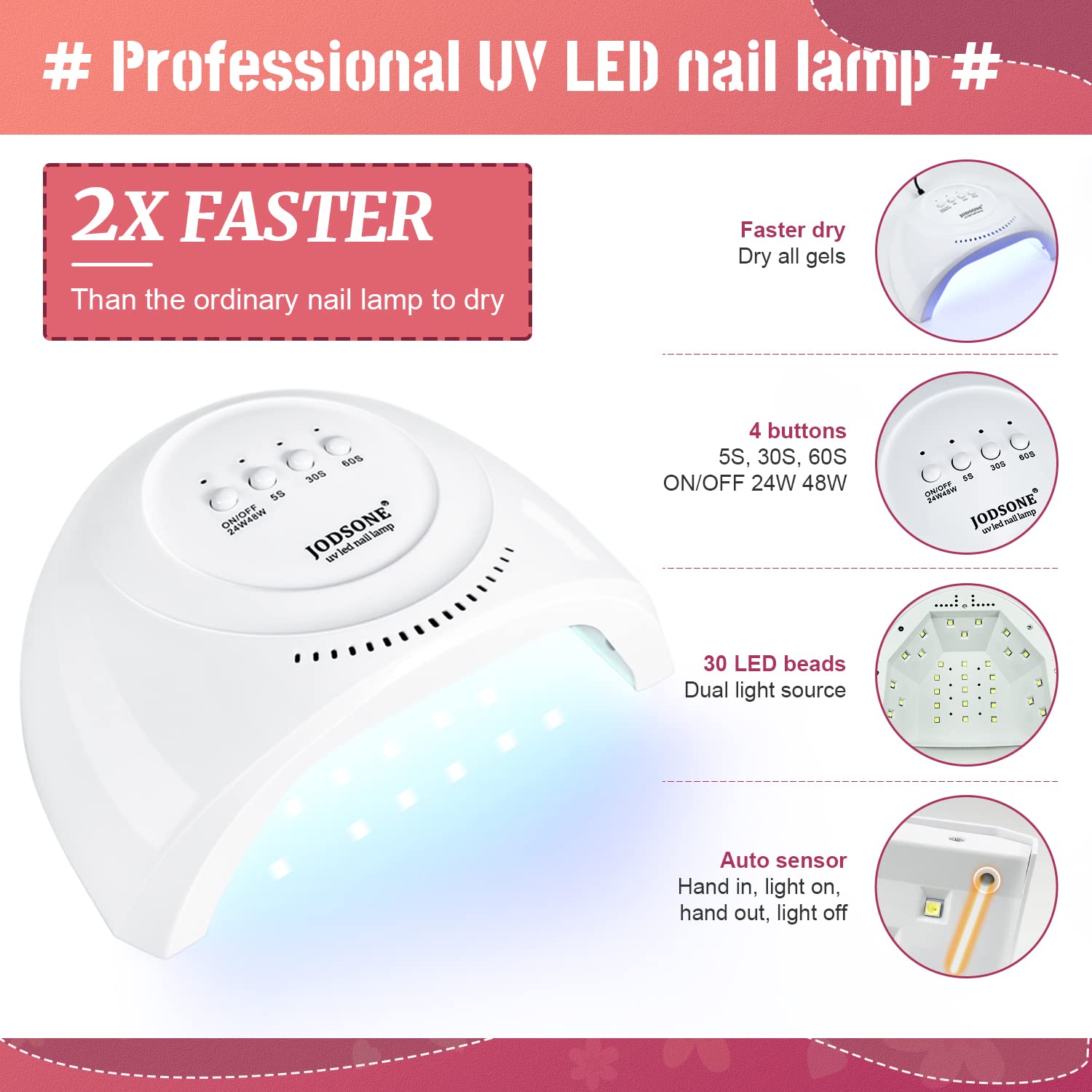 JODSONE Gel Nail Polish Kit with U V Light 36 PCS Classic Black and White Nude and Blue Purple Gel Polish Set with Manicure Tools Suitable for All Sea