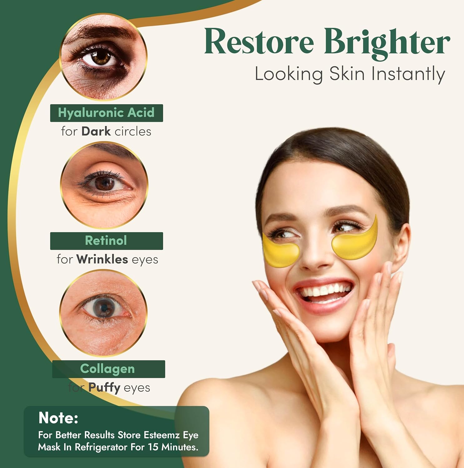 - Cooling Comfort: Elevate your skincare experience with a luxurious, cooling sensation that relaxes and invigorates. Feel the stress melt away as you indulge in the soothing embrace of our 24k gold eye mask patches
