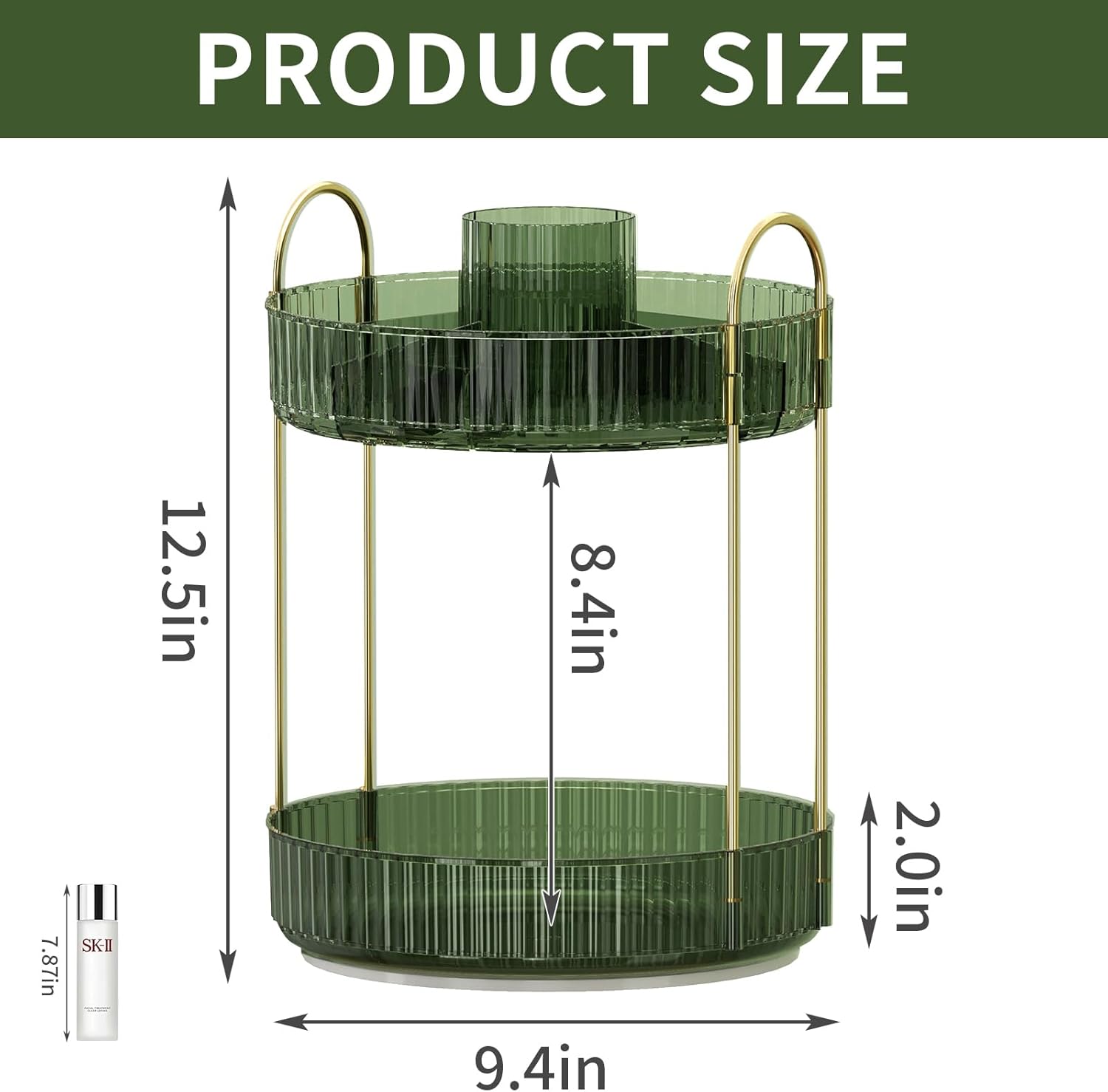 - 【360° Rotation】: The large-capacity makeup organizer allows you to store your cosmetics and skincare products in a clean and orderly space, 360° smooth rotation allows you to quickly find what you need, It's very convenient. The raised edges prevent cosmetics from falling off during rotation.