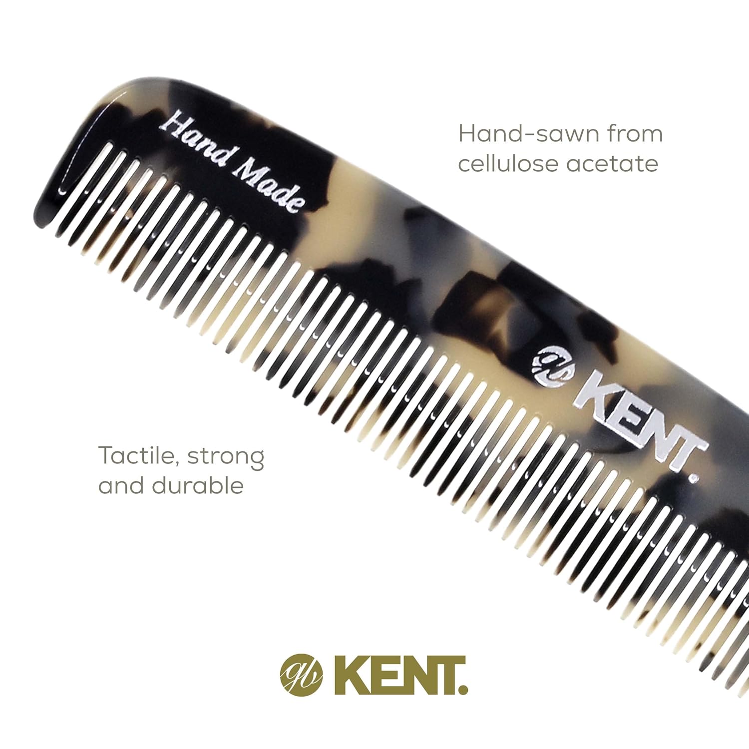 - GENTLE GLIDING COMB: The hand sawn combs are the nature of Kent’s Success. Cellulose acetate is a tactile, yet flexible and strong matrial. They glide effortlessly through hair without scratching or damaging the hair or scalp. Kent Combs have rounded teeth which ensure smooth and comfortable action.