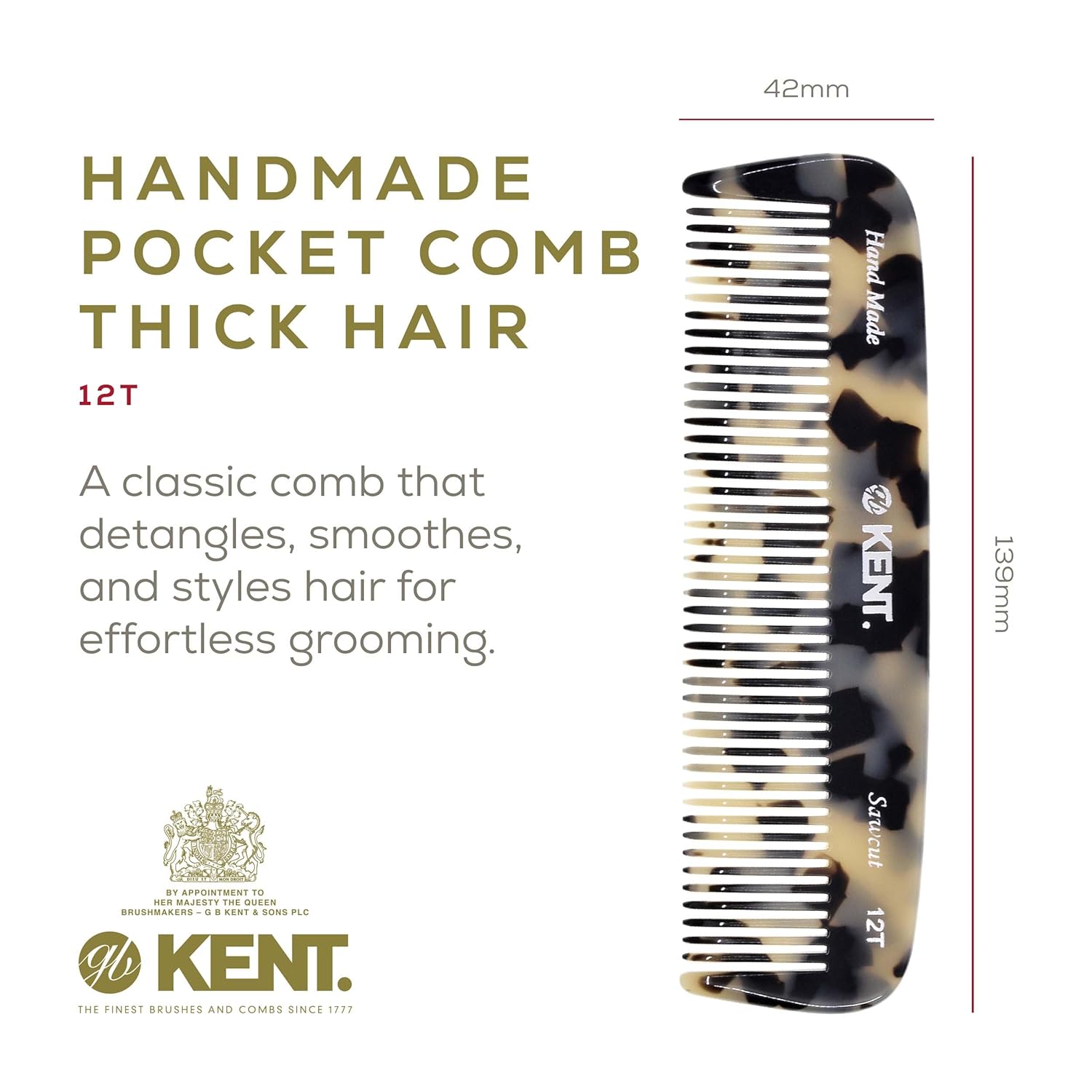 Kent 12T TW Wide Tooth Detangling Comb - Handmade Pocket Comb for Thick, Curly, and Wavy Hair Grooming - Large Tooth Detangler for Hair, Beard, and Mustache