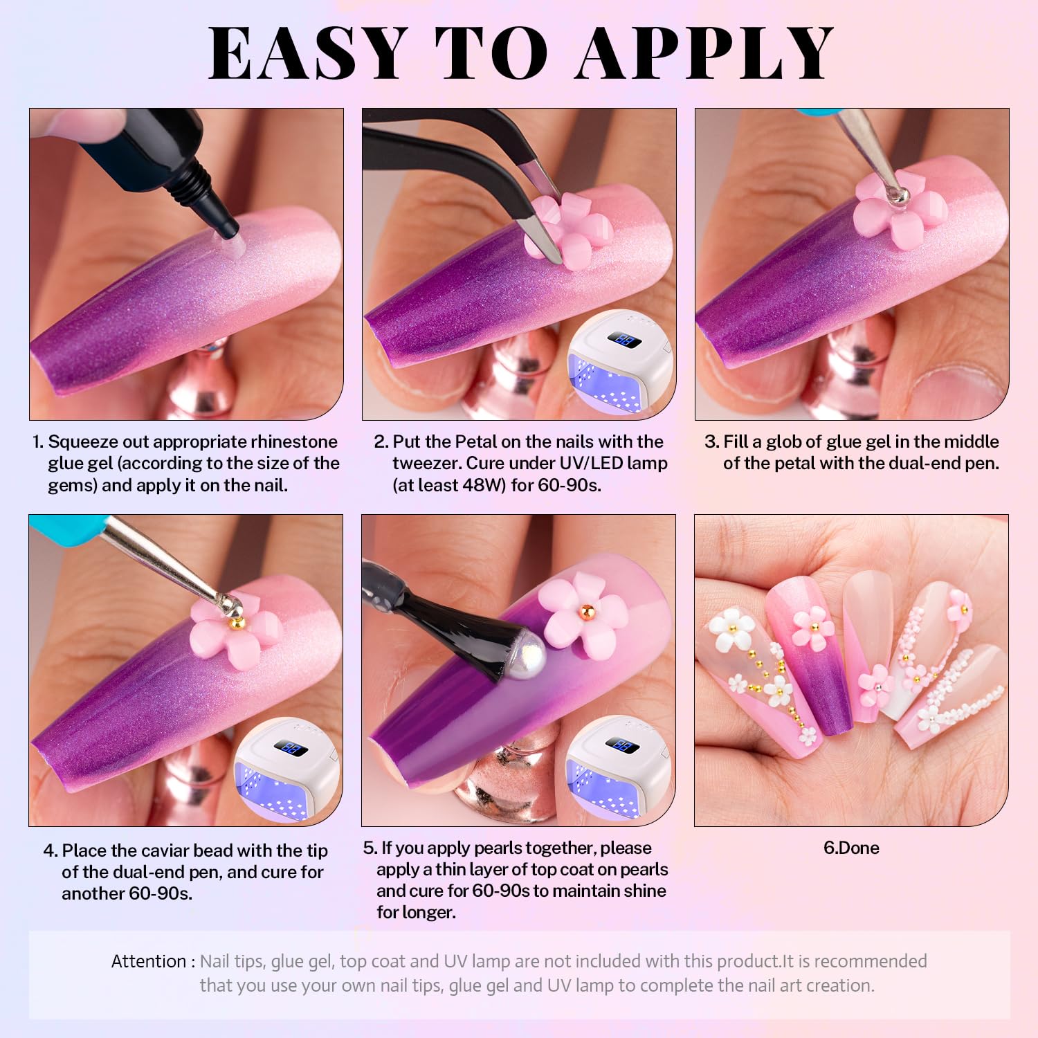 - 💎RHINESTONE DOTTING PICKER TOOLS -- The wide-head brush end of the dual-end dotting tool makes it easy to apply a large amount of glue to the nail surface at once, while the other mini dotting end is great for detailed drawing. Picker pen can help you handily pick up small flowers and metal beads, while tweezer is a better choice for big flowers and charms. The craftbeads are not self-adhesive and glue-needed. (Glue is not included.)