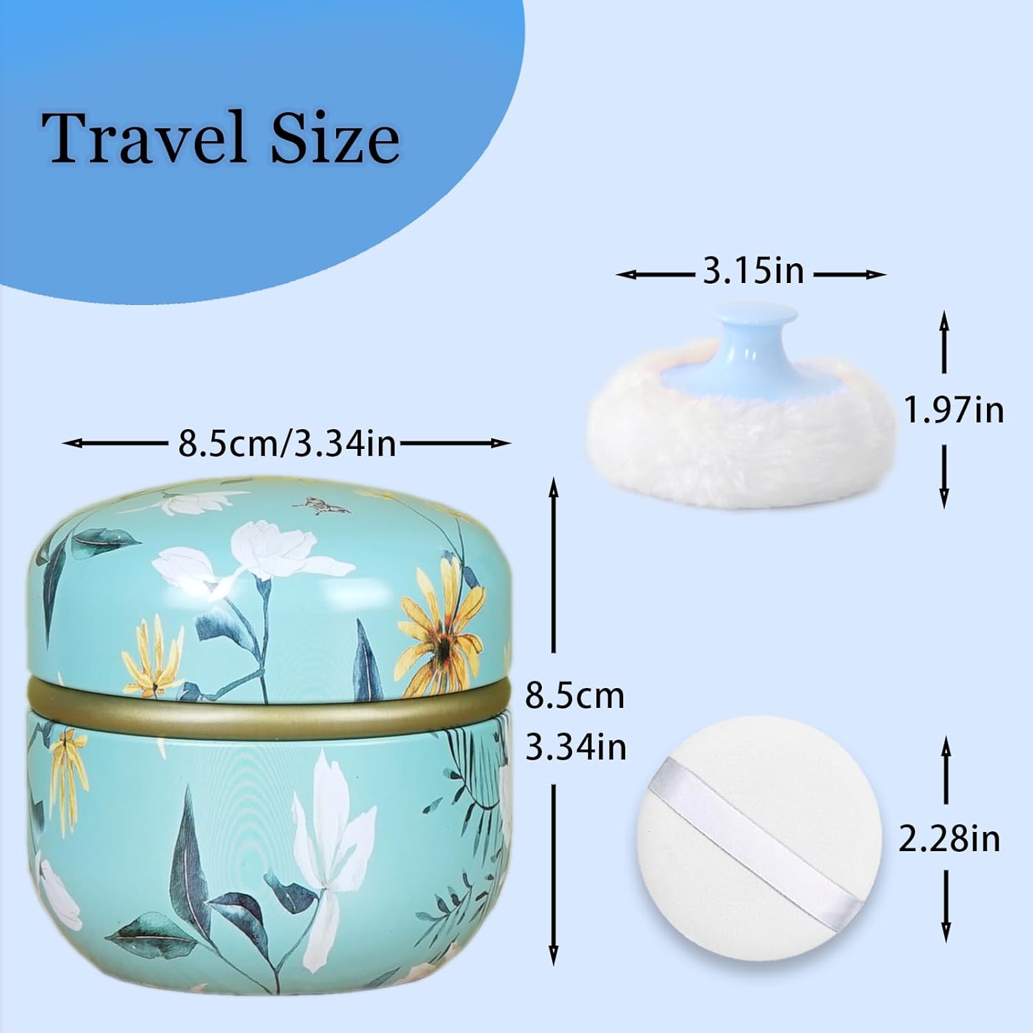 - 【Multifunctional Body Powder Container】: Our powder case is made of tinplate, not easy to break and fade and Anti-rust, which is sturdier than those made of plastic. In addition to store powder, also they can be applied to store tea, sugar, even the jewelry like earrings, hairpins and etc.