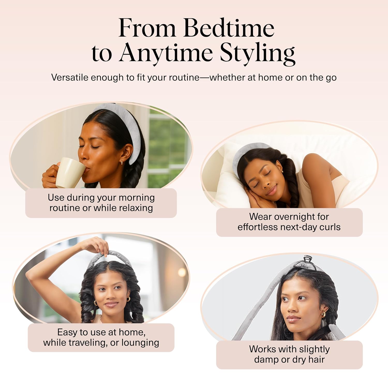 - COMFORTABLE & EASY TO USE – DAY OR NIGHT: Designed for all-day comfort or overnight curls, this soft heatless curler is lightweight, secure, and stylish enough to wear while getting ready or lounging. Just wrap your hair around the hair rod, secure with the included scrunchies, and relax—no heat, no fuss.
