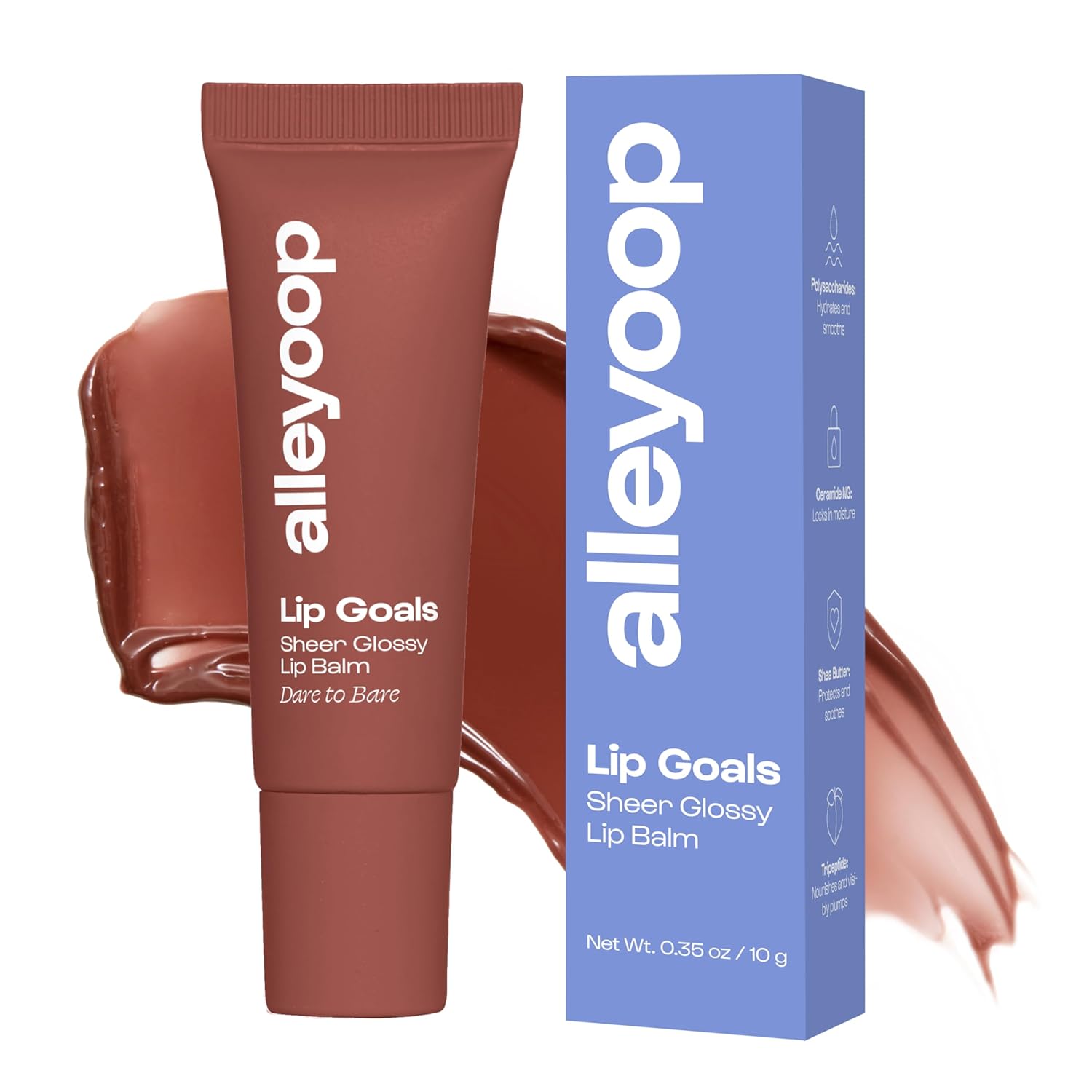 Alleyoop Lip Goals Glossy Lip Balm – Hydrating Tinted Lip-Moisturizer for Women - Vegan LipBalm for Cracked Lips, Moisturizing LipGloss Balm - Lips Treatment & Hydration Care, (Sheer Rosy Brown)