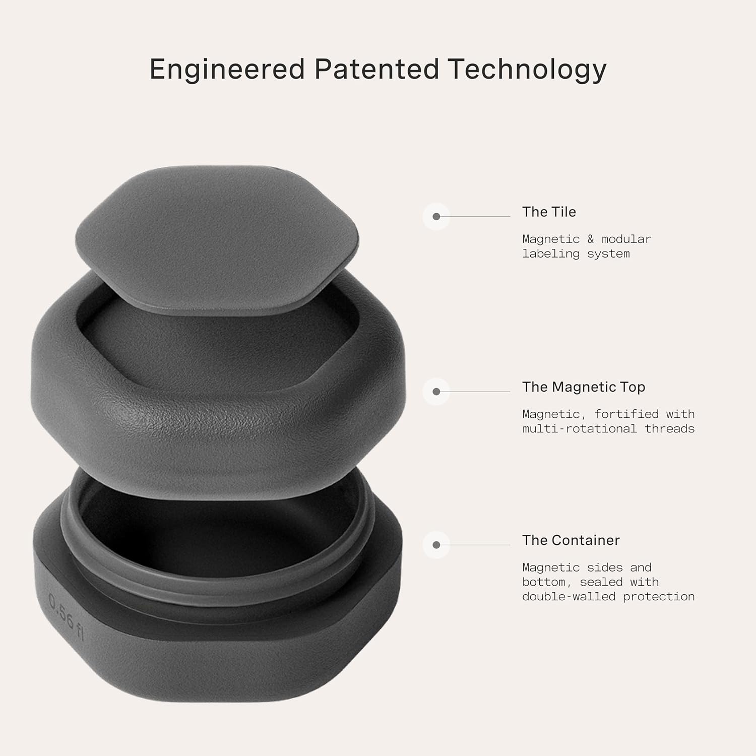 - PATENTED MAGNETIC DESIGN - Designed for seamless storage, our travel capsules feature a magnetic design that connects each container vertically or horizontally. They include magnetic labels that seamlessly swap between The Flex Small, The Flex Medium, and The Flex Large Capsules.