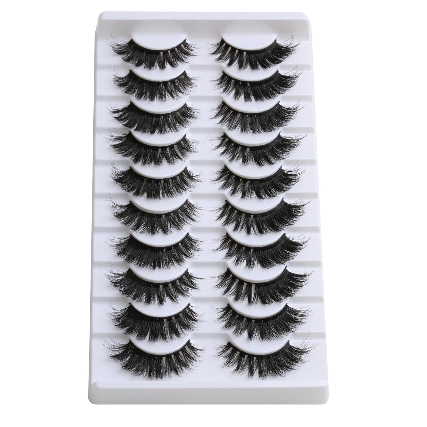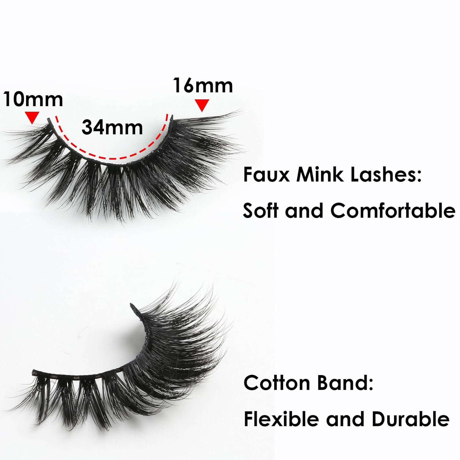 SUNWELL False Eyelashes 16mm Mink Lashes 8D Fluffy Cat Eye Faux Mink Lashes Strip Lashes Soft Reusable Luxury Volume Fake Eyelashes 10 Pairs Pack