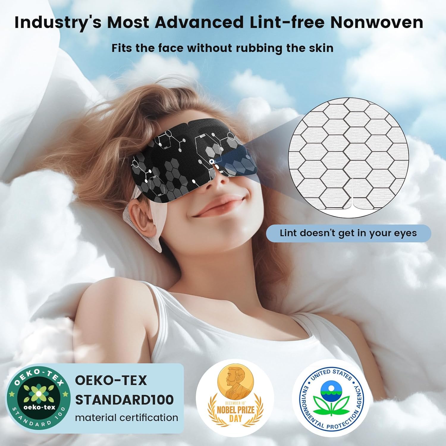 - Low-sensitivity Non-woven Fabric: The steam eye mask for dry eyes utilizes industry-leading non-woven fabric, lint won't get in your eyes. The fabric is soft and ultra-thin, preventing pressure on the eyeballs. With natural fiber materials and a low-sensitivity formula, it is less likely to cause skin allergies or irritation. The filling material is non-irritating and does not burn or release harmful substances.