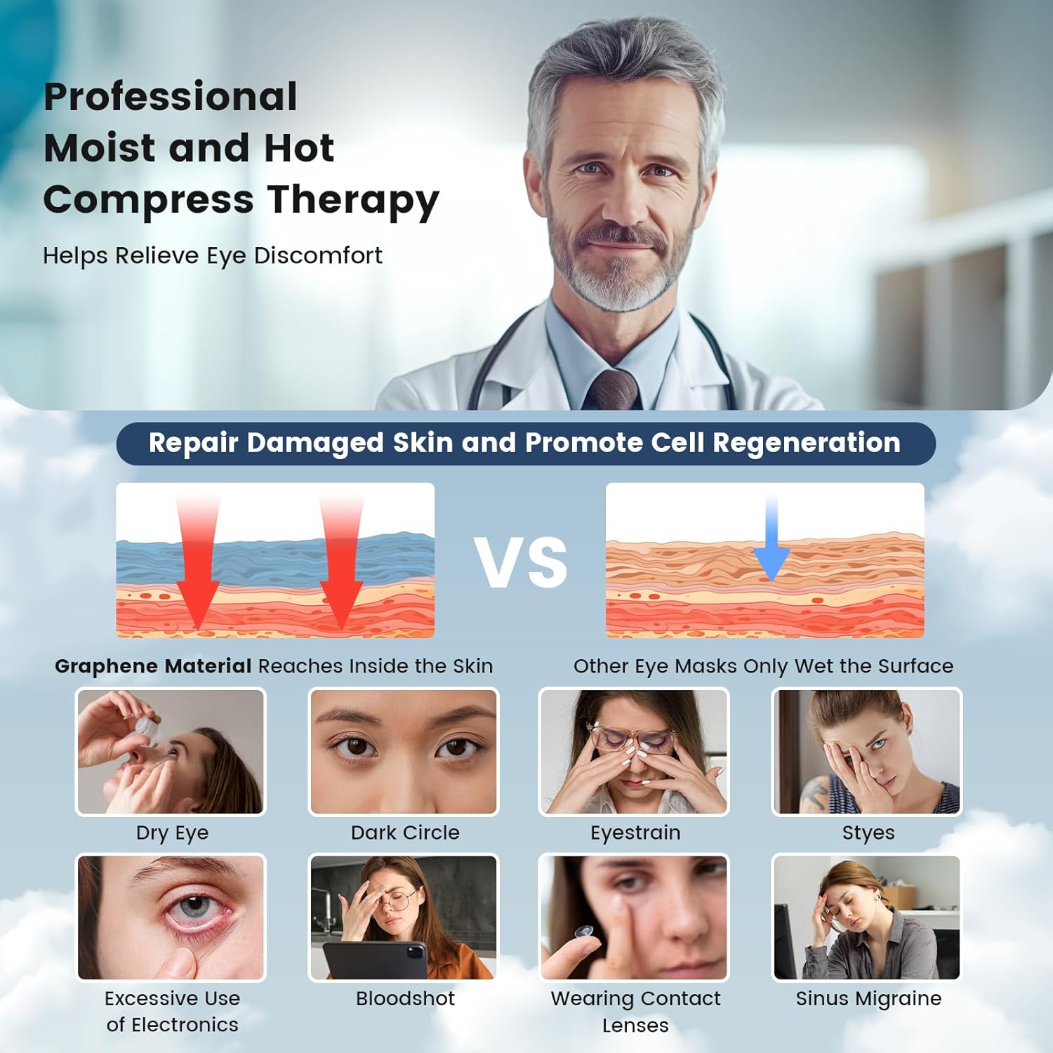- Product Benefits : Graphene material penetrates deep into the skin to relieve dry and tired eyes, dark circles and many eye discomforts. Natural lavender extract helps to soothe nerves and improve sleep quality. Graphene material penetrates deep into the skin to relieve dry and tired eyes, dark circles and many eye discomforts. Natural lavender extract helps to soothe nerves and improve sleep quality.