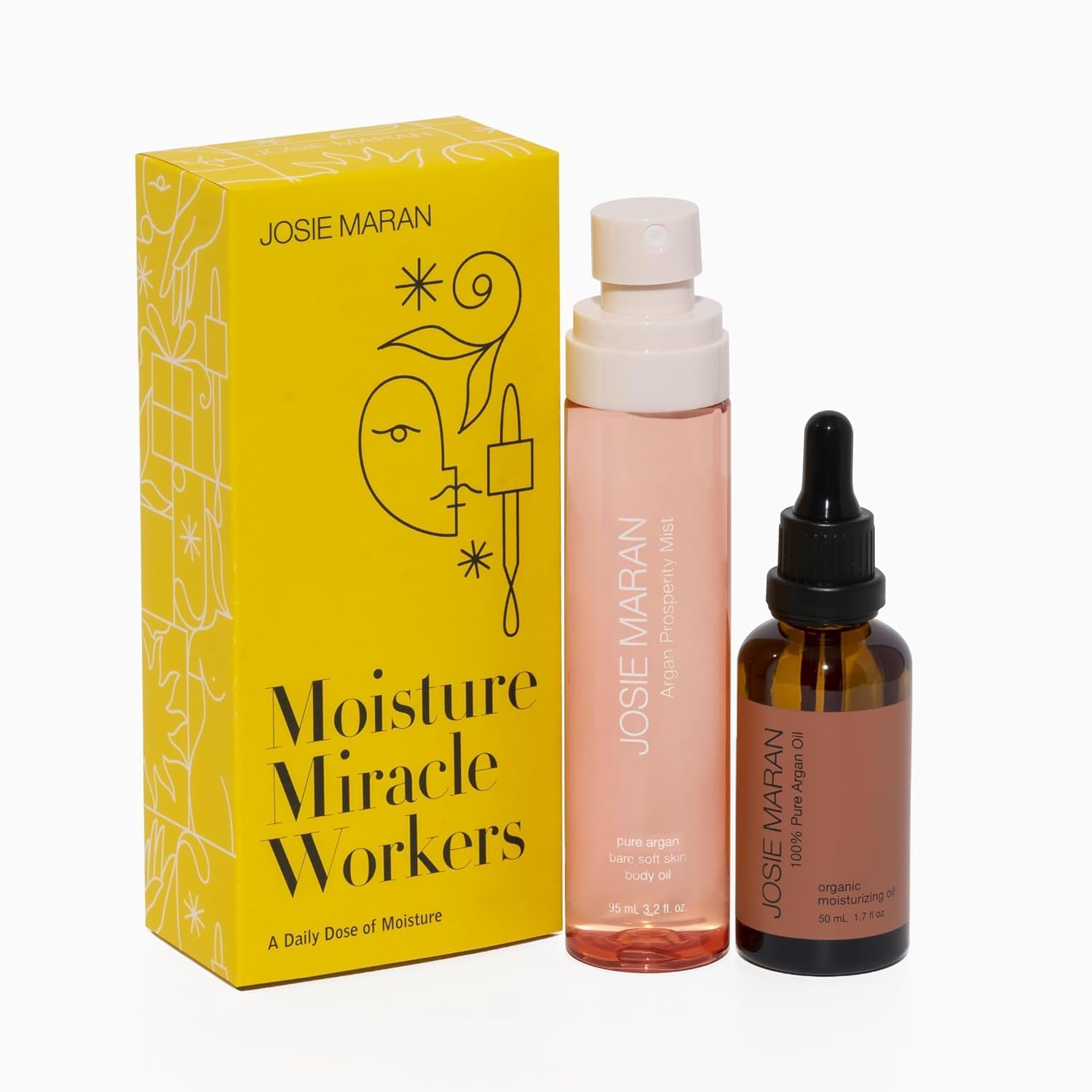 Josie Maran Moisture Miracle Workers Duo - 100% Pure Argan Oil & Hydrating Body Mist - Moisturizing Skincare Set with Nutrient-Rich Ingredients for All Skin Types - Vegan & Cruelty-Free (2 Piece Set)