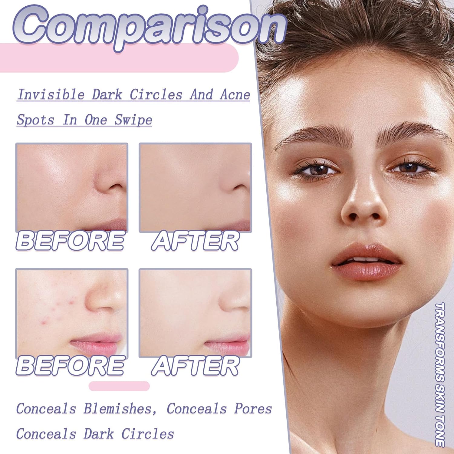 - 🦄【Highly Effective Concealer】Each concealer contour palette comes in 3 different colors, natural to conceal dark eye circles, wheat to conceal facial blemishes and contour, and light skin tone to use as a highlighter.