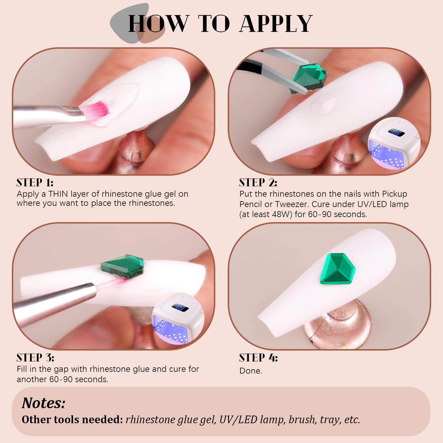 - Included Components : Nail Rhinestone, Tweezer, Pickup Pen
