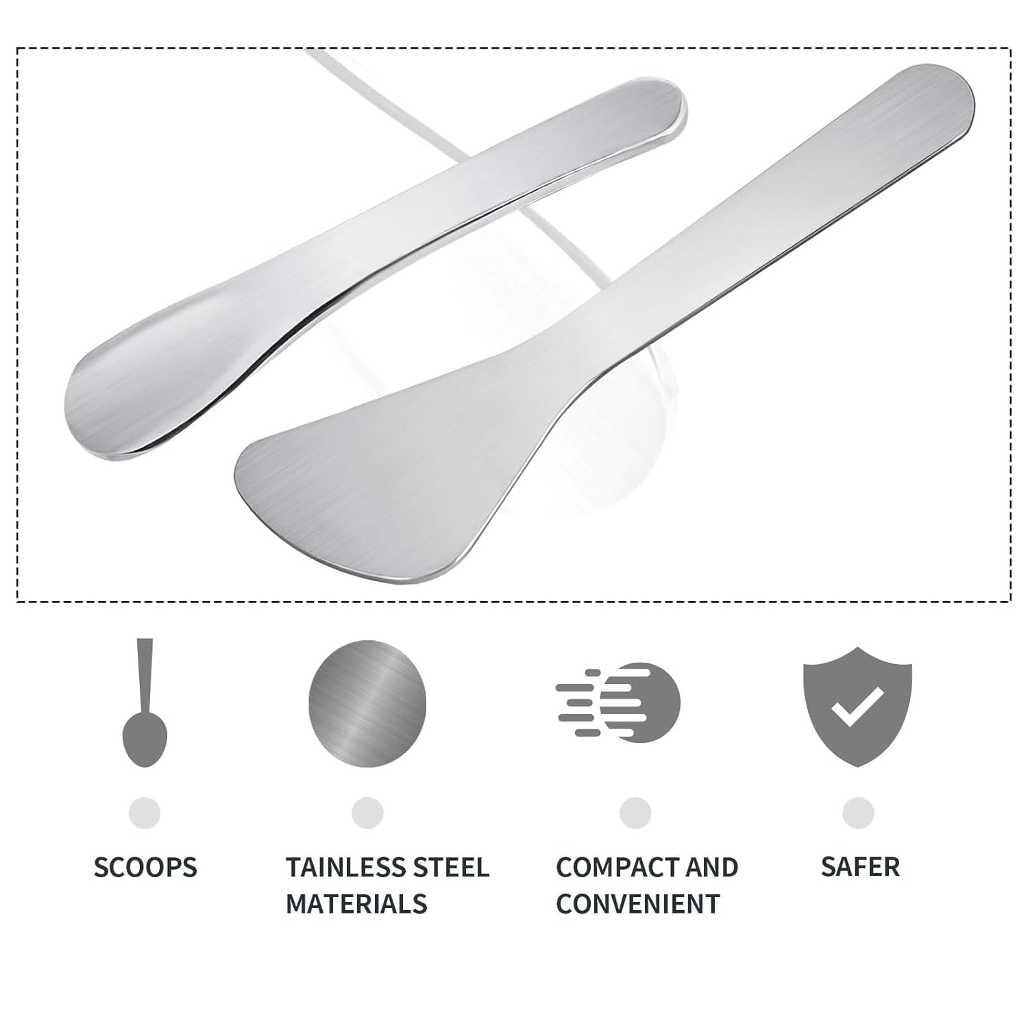 - 【Package List】The package contains 2 pieces of mini stainless steel cosmetic spatulas, the color is silver.
