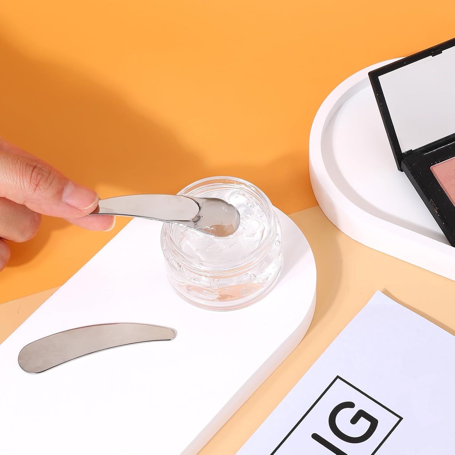 - Product Benefits : This product offers multiple spatula options for various beauty needs, ensuring hygienic and precise application of skincare creams, lotions, serums, and cosmetics. Its high-quality, easy-to-clean material and compact size make it ideal for travel and daily use, promoting a hygienic skincare routine. This product offers multiple spatula options for various beauty needs, ensuring hygienic and precise application of skincare creams, lotions, serums, and cosmetics. Its high-quality, easy-to-clean material and compact size m… See more