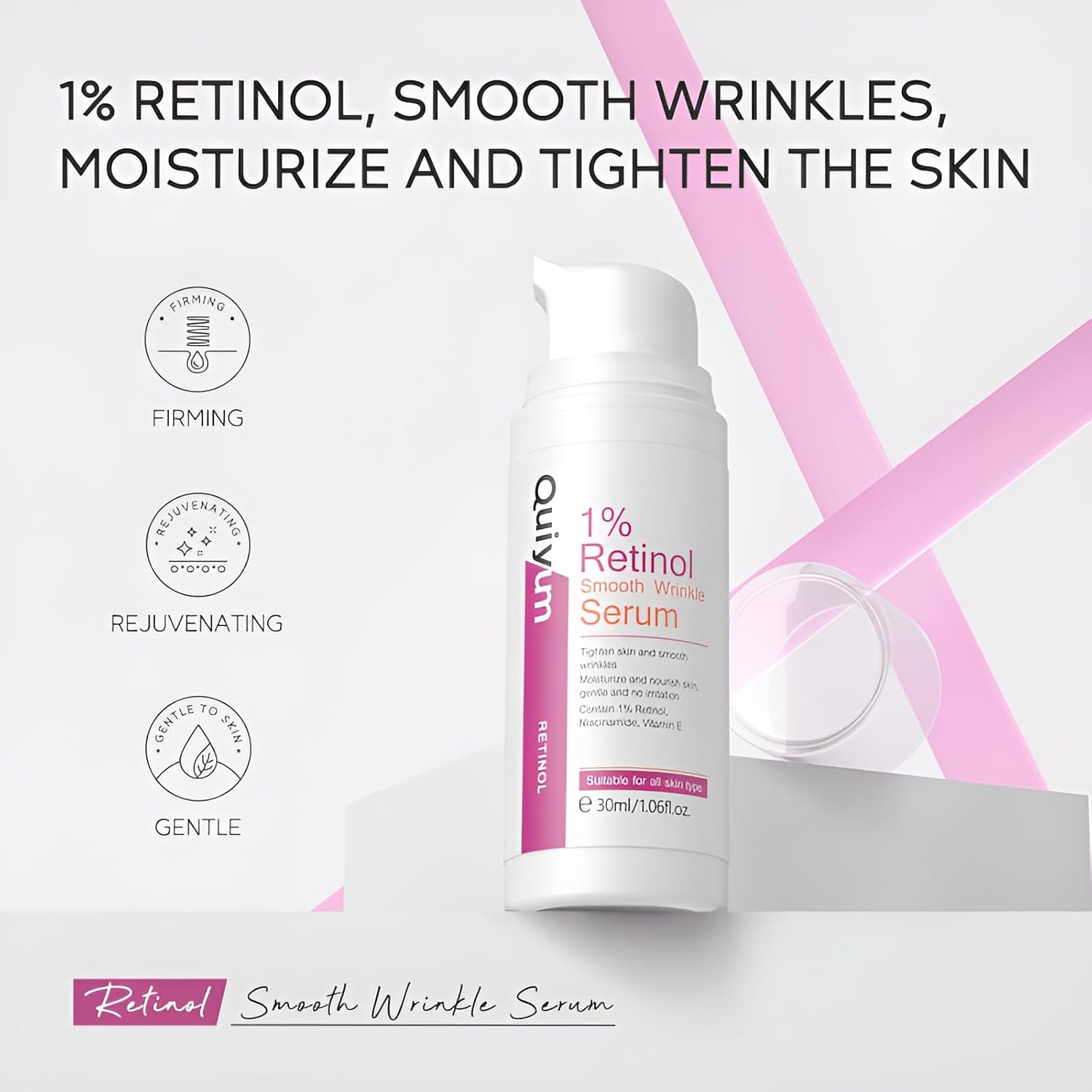 - 【Retinol Serum for Face】Retinol is a dermatologist-proven form of Vitamin A known for its ability to rapidly boost skin cell turnover, which can effectively combating fine lines, dullness, wrinkles and dark spots. Experience renewed and resurfaced skin, revealing a radiant and youthful complexion with QUIYUM Retinol Facial Serum.
