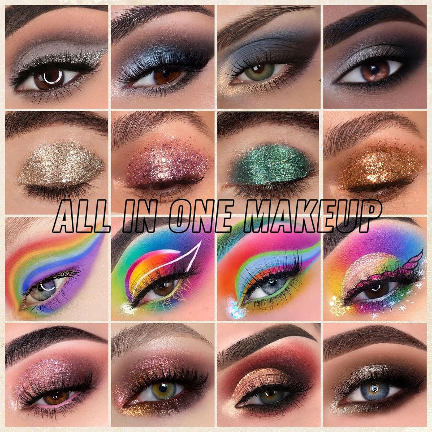 - 【❤Highly Pigmented and Cruelty-free Beauty】The all-in-one makeup palette set includes 86 shades-smooth mattes, vibrant shimmers & fine pressed glitters. Coupled with a professional brush set, this makeup kit offers endless looks ranging from natural everyday look to captivating gorgeous eye looks. The formulated ingredients are high quality, safe and healthy, suitable across all skin tone and eye color. Never tested on animals.