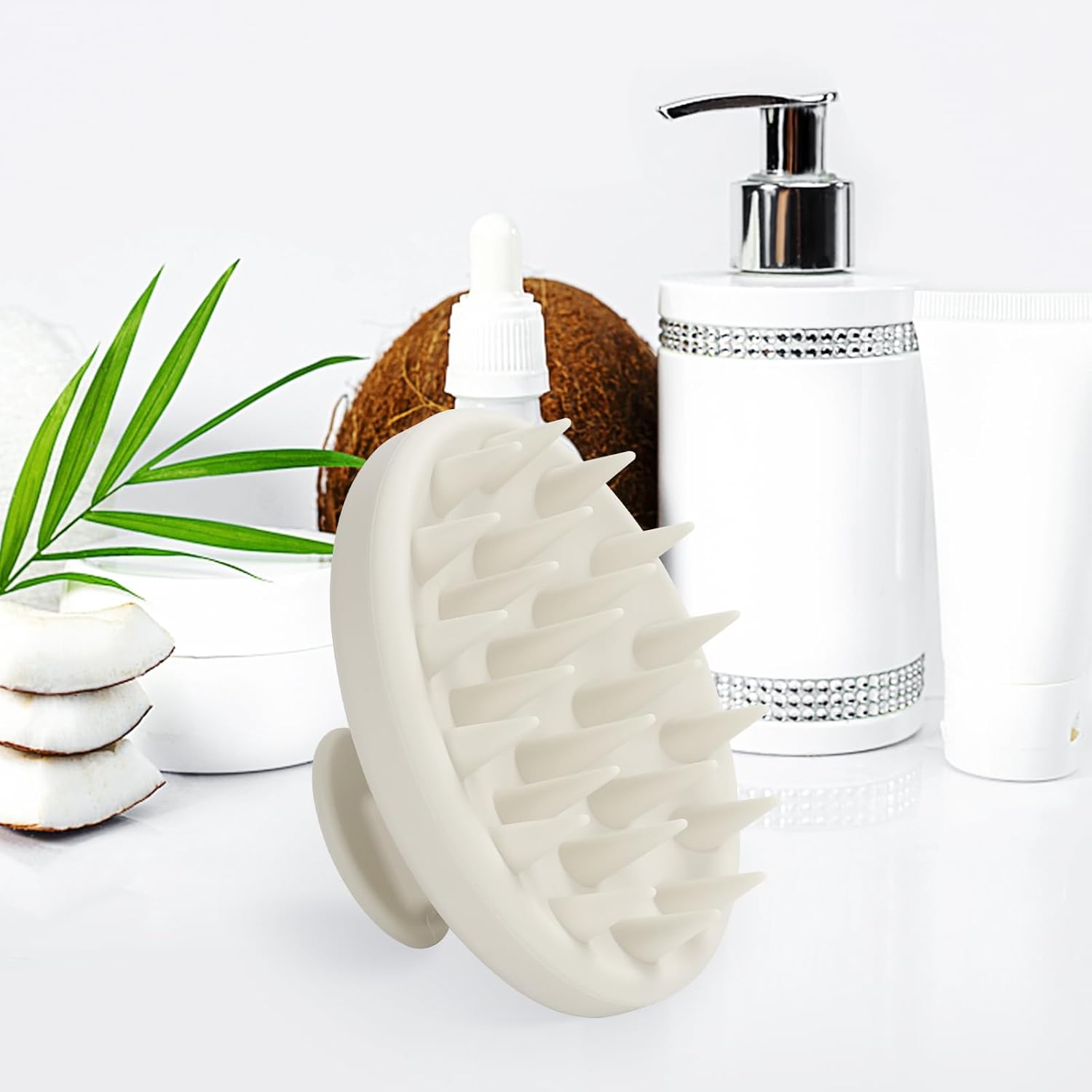 Silicone Scalp Massager, Scalp Scrubber for Hair Growth with Soft Bristles, Scalp Exfoliator Brush Dandruff Removal Shampoo Brush for Wet Dry Scalp Care (Warm Grey)