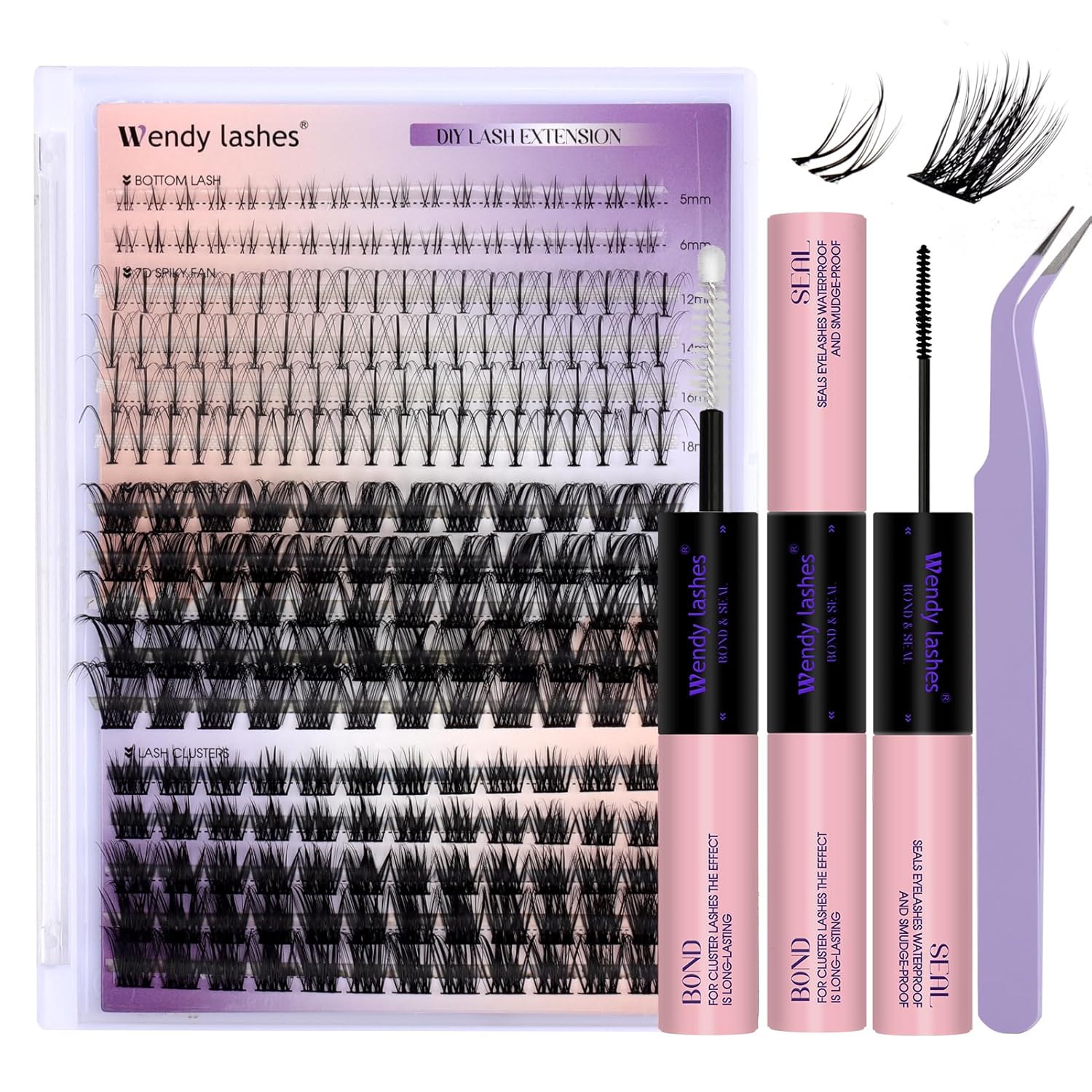 - PREMIUM QUALITY LASHES, EASY TO WEAR: WENDY LASHES eyelash extension kit have super soft lash tips and looks like more realistic and wispy. Matte black, and natural lashes can be better blended. Bottom lashes with transparent wide band are easier to handle and more natural looking compared to single lashes.