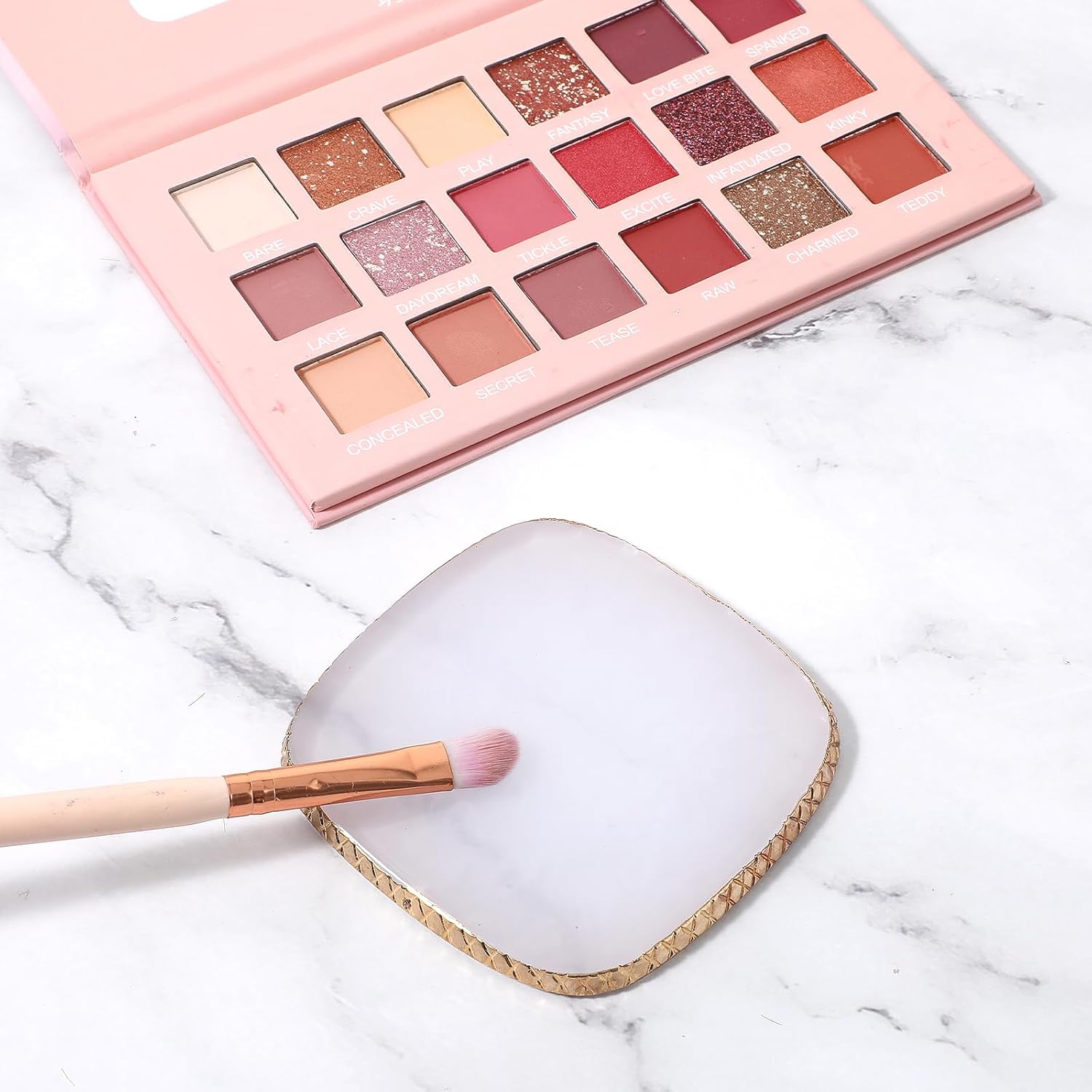 - 【Exquisite Design】Makeup mixing plate uses marble texture with gold trim, heart-shaped translucent pattern, comfortable touch, meticulous color palette, high-end exquisite