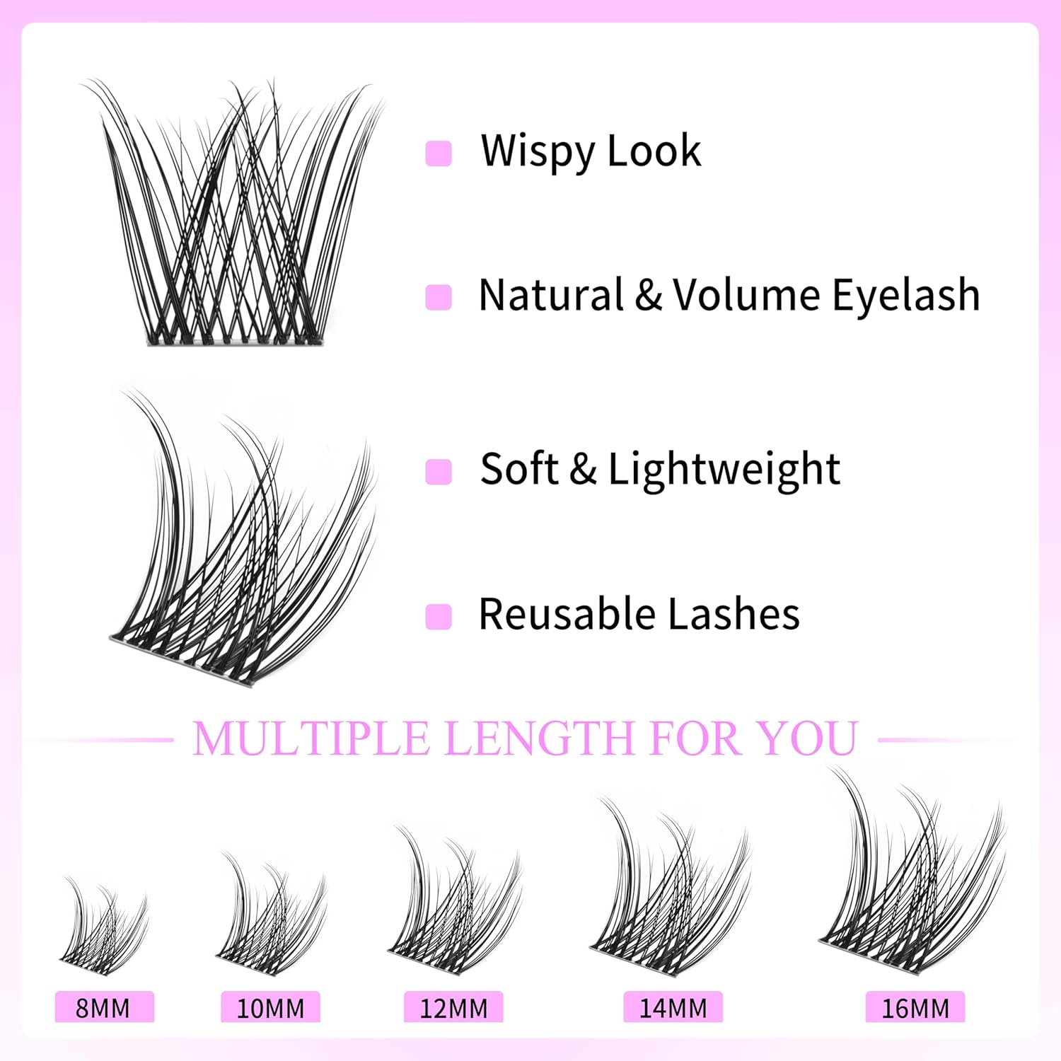 - Newbie's Five-Second Lashes : Eyelash clusters with wider bands, only 4-6 clusters per eye, ensure that lash newbies can simply and quickly complete a perfect lash extension