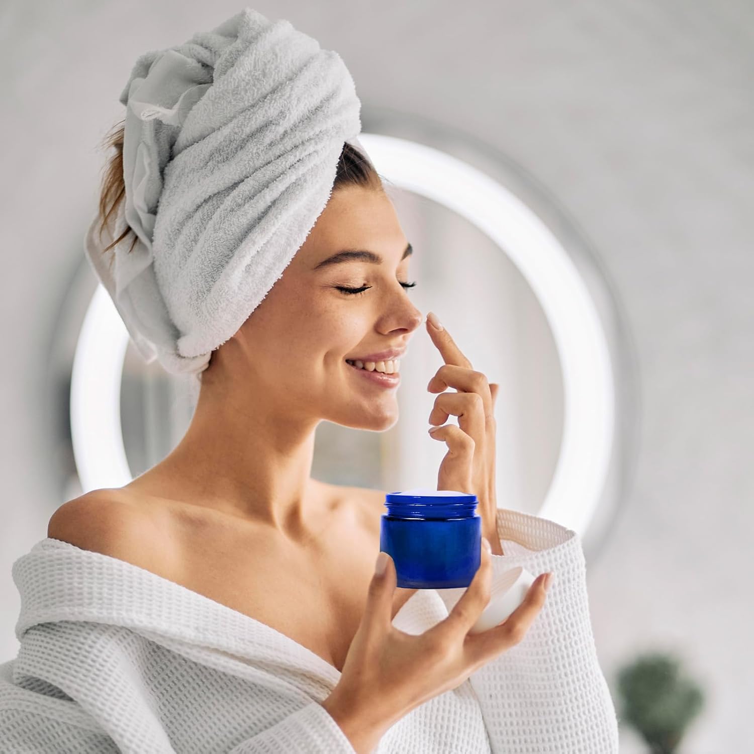 - UV Protection:Blue glass is used for protecting the contents of this airtight glass jar from harmful UV rays, especially leftover items that need to be sealed and kept out of the light. Effectively protect the face expiration date of your cream in the sun