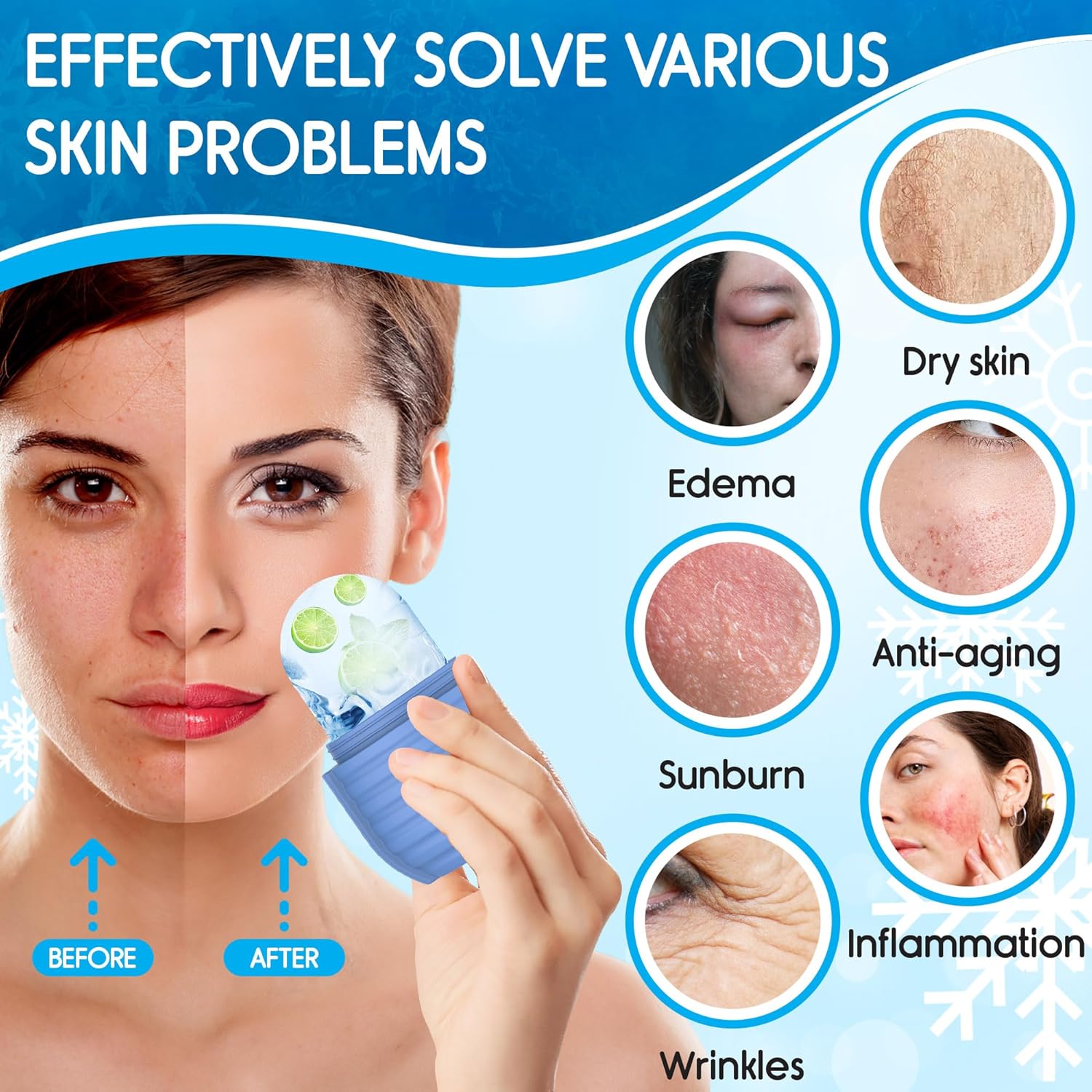 2Pcs Ice Roller for Face, Ice Face Roller, Reusable Silicone Ice Mold for Face, Facial Beauty Ice Roller Skin Care Tools for Shrink Pores Anti Wrinkle Reduce Puffiness (Blue + Pink)