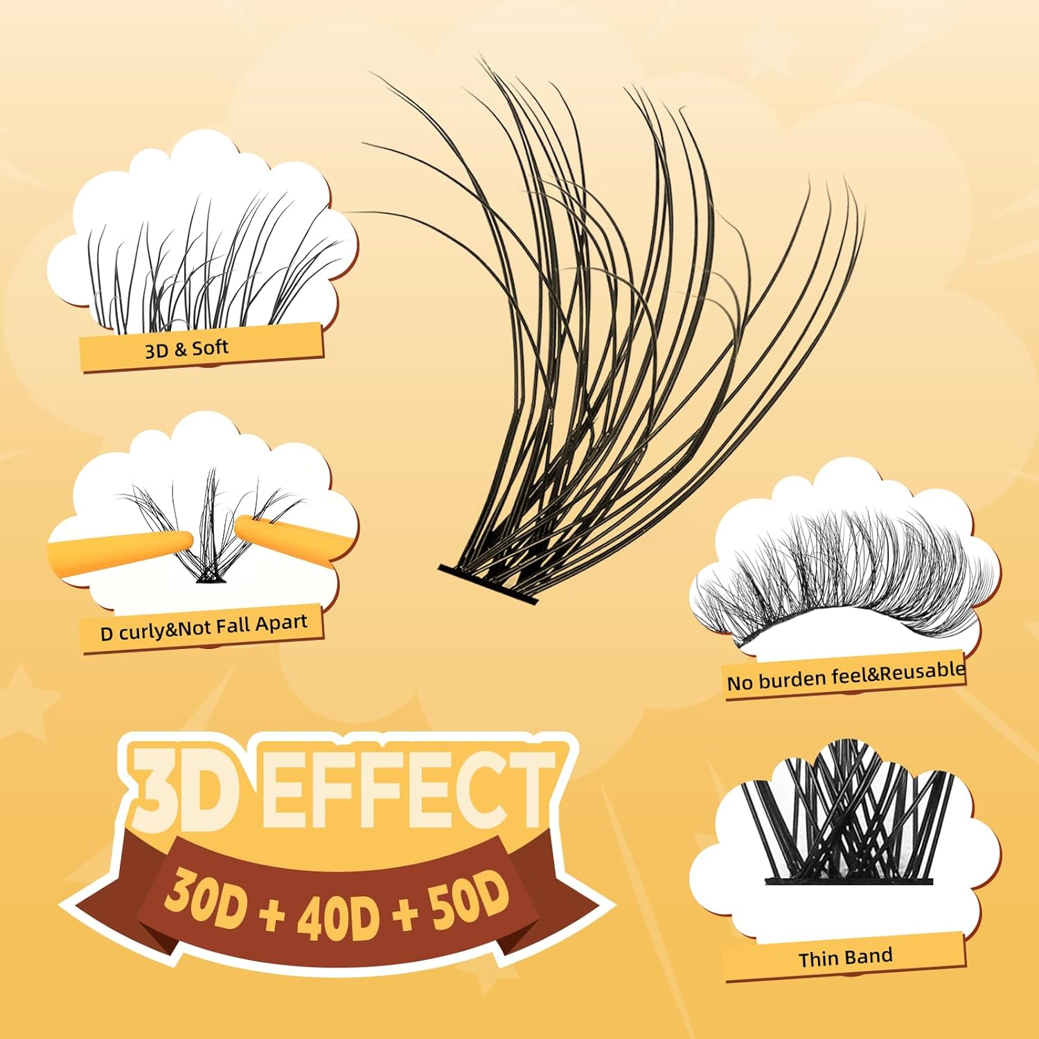 - DIY Lash Extension Kit: QUEWEL DIY cluster eyelash extensions kit includes 280pcs 3D 30D+40D+50D volume lash clusters, 1*10ml lash bond and seal, 1* cluster lashes tweezers. You can achieve a salon-level eyelash clusters experience at home, and make your eyes more attractive. You can take this three-piece eyelash extension kit, lashes extension kit saves time and money