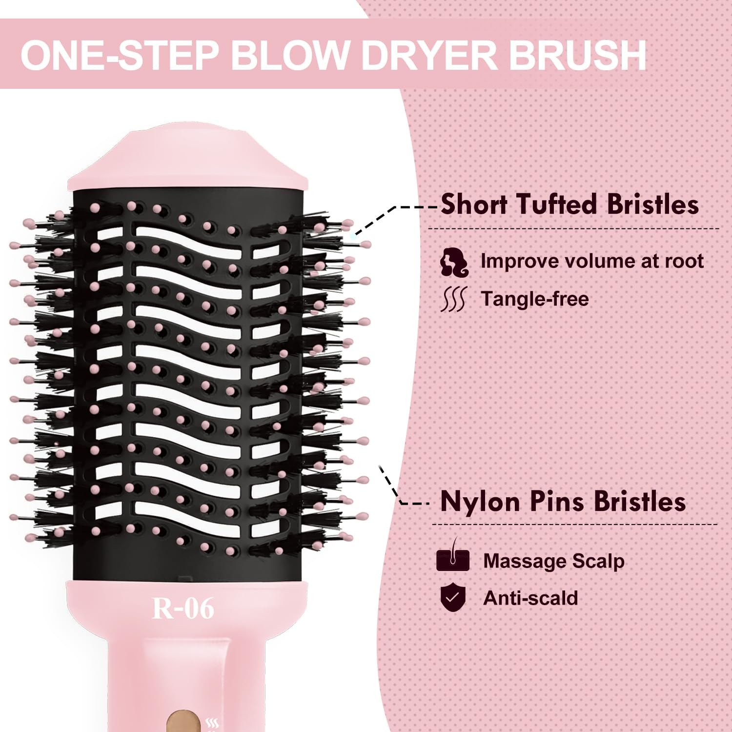 Hair Dryer Brush Blow Dryer in One, 4 in 1 Hair Dryer and Styler Volumizer with Oval Barrel, Professional Salon Hot Air Brush for All Hair Types, Bright Pink
