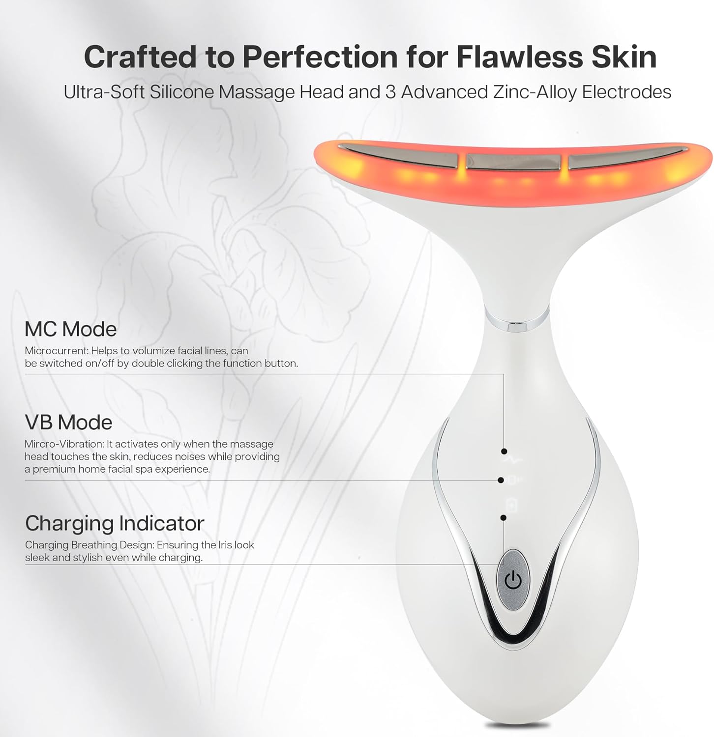 Iris Neck Face Massager, Pro Face Sculpting Tool with Charging Base, All-in-1 Facial Device for Enhanced Absorption, Radiance, Contouring, Elasticity, Home Facial Spa (White)