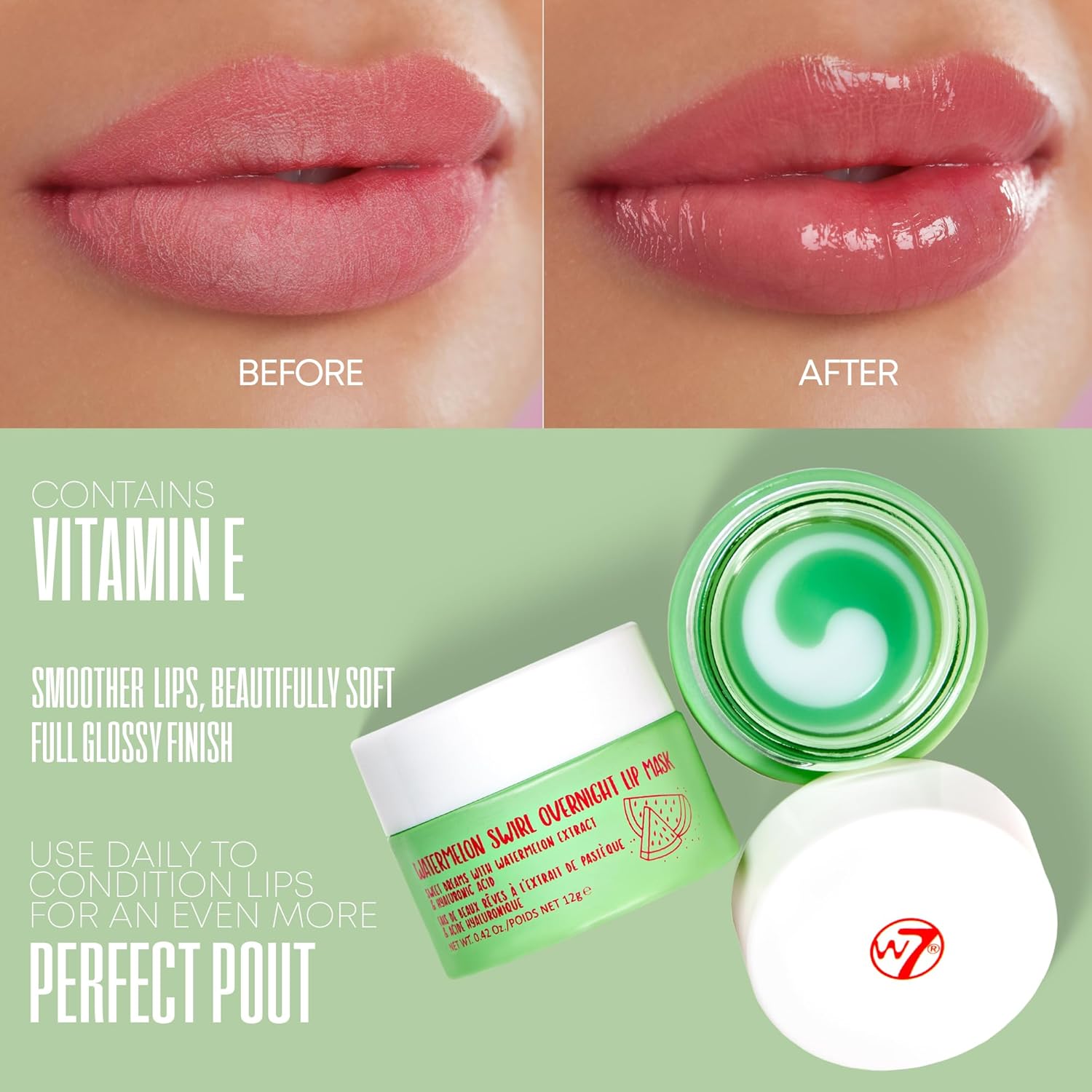 W7 Sweet Dreams Overnight Watermelon Swirl Lip Mask - Watermelon Fruit Extract & Hyaluronic Acid - For Hydrated, Full Looking & Irresistible Lips